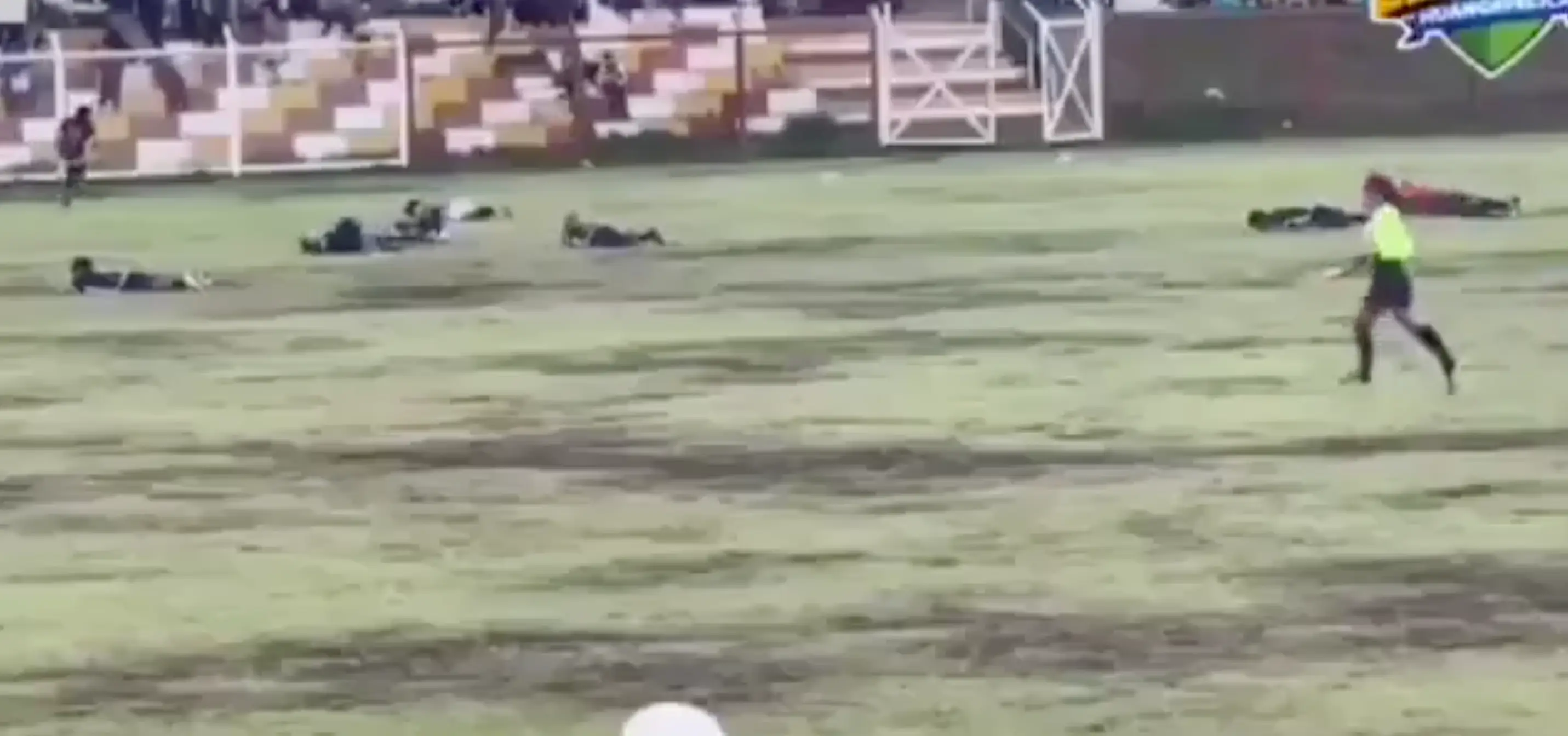 However, as the players begun to walk off the field, five players and what appeared to be either a goalkeeper or a member of support staff immediately collapsed after being hit by lightning in horrifying footage.