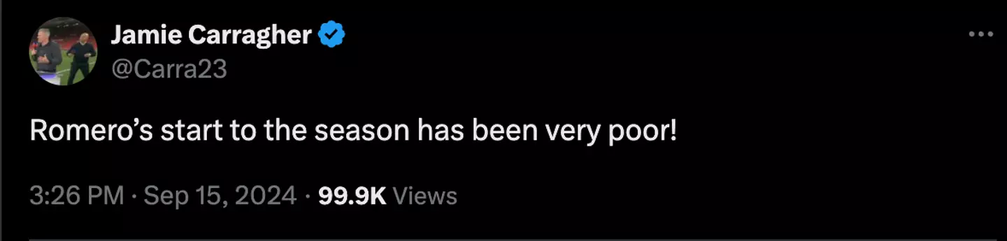 He simply tweeted: "Romero's start to the season has been very poor!"