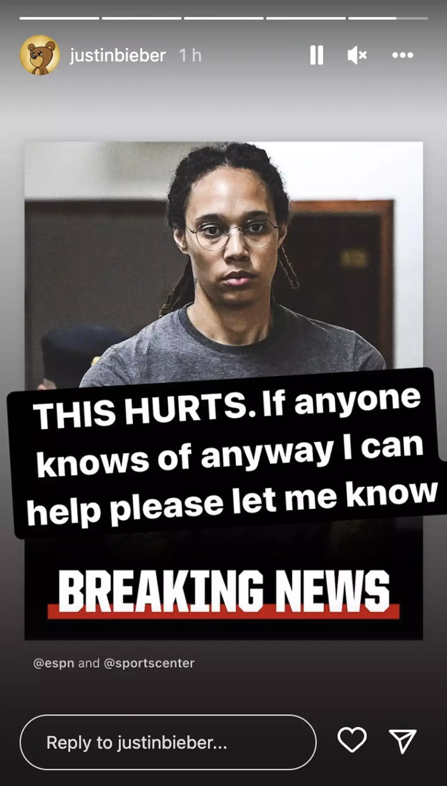 Justin Bieber has offered to help get Brittney Griner out of prison following the news that the WNBA star had been handed a nine year sentence.