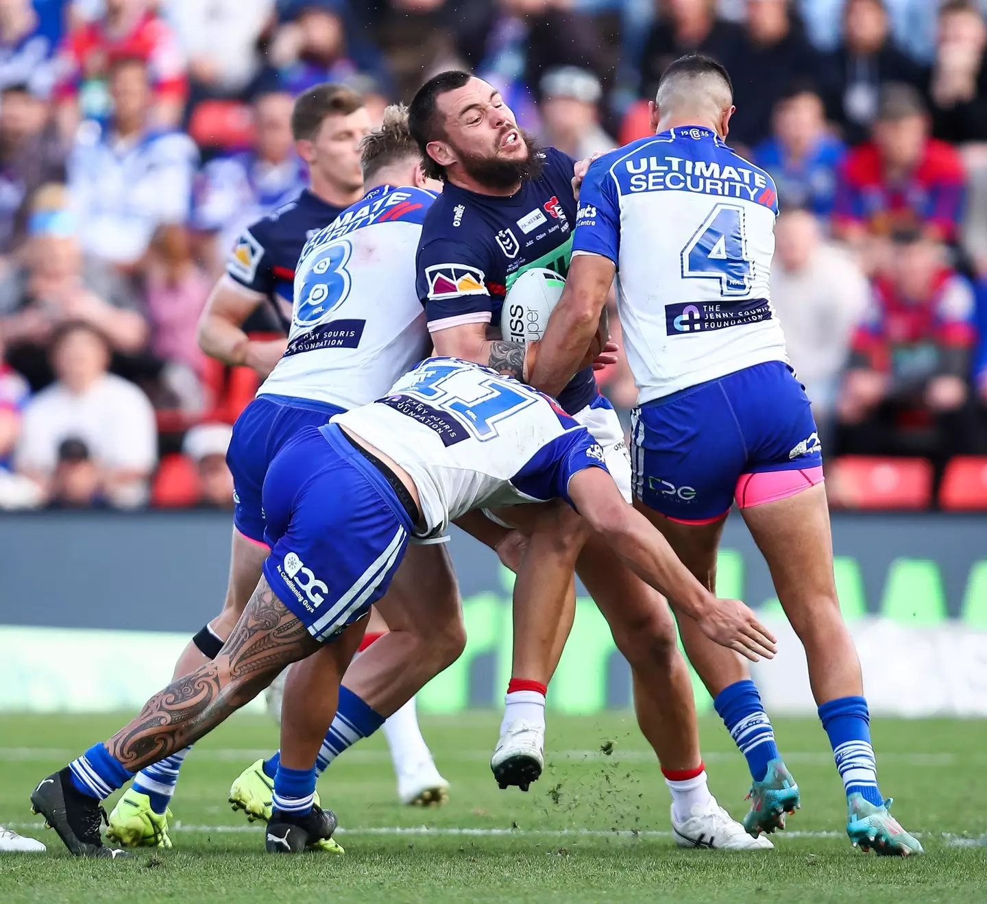 The incident came just after the 71st minute of the Knights' 24-10 loss at the hands of the Canterbury Bulldogs.