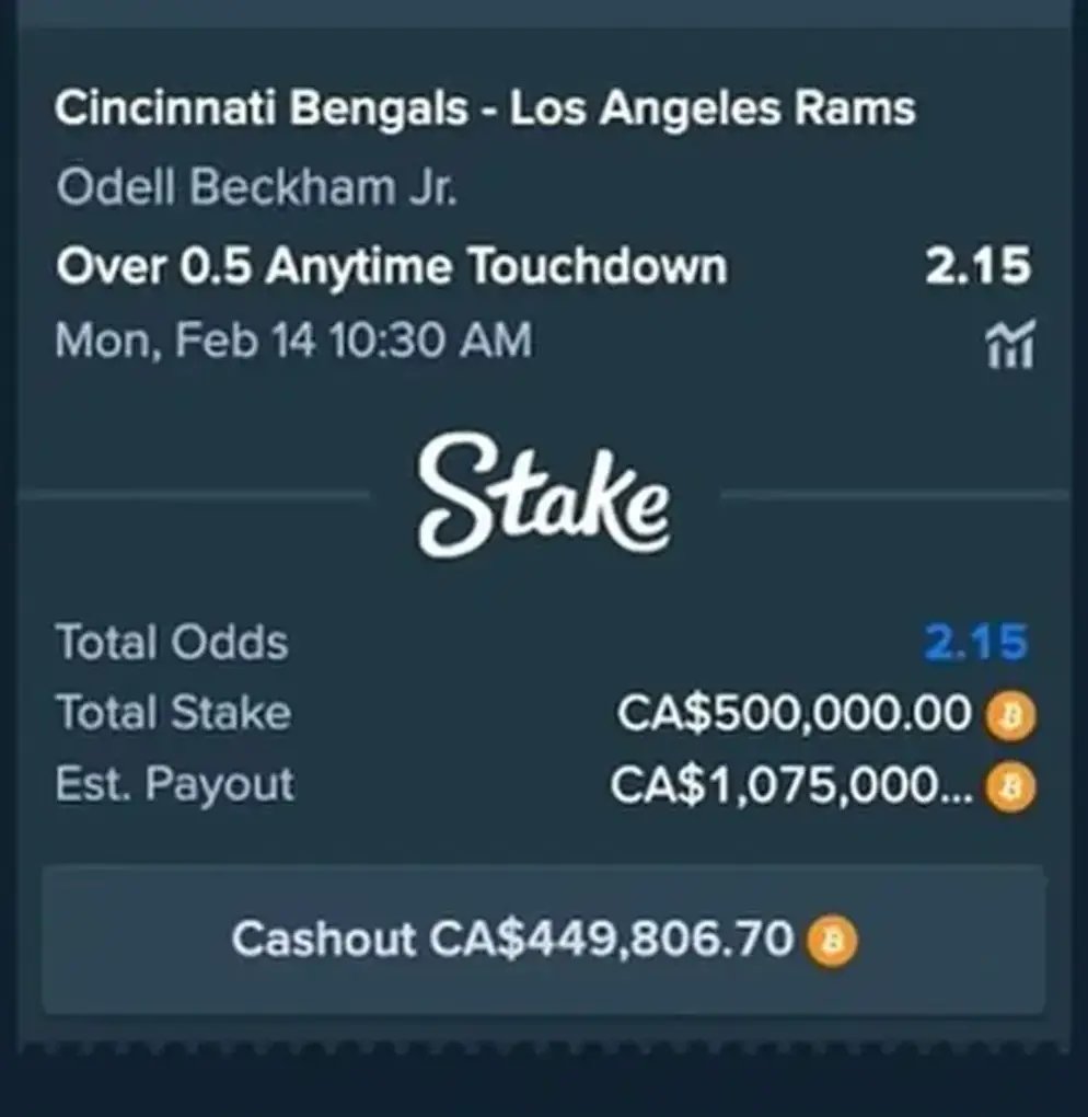 The rapper tipped the Los Angeles Rams to triumph over the Cincinnati Bengals, meaning he has cashed in a significant amount on that punt already.