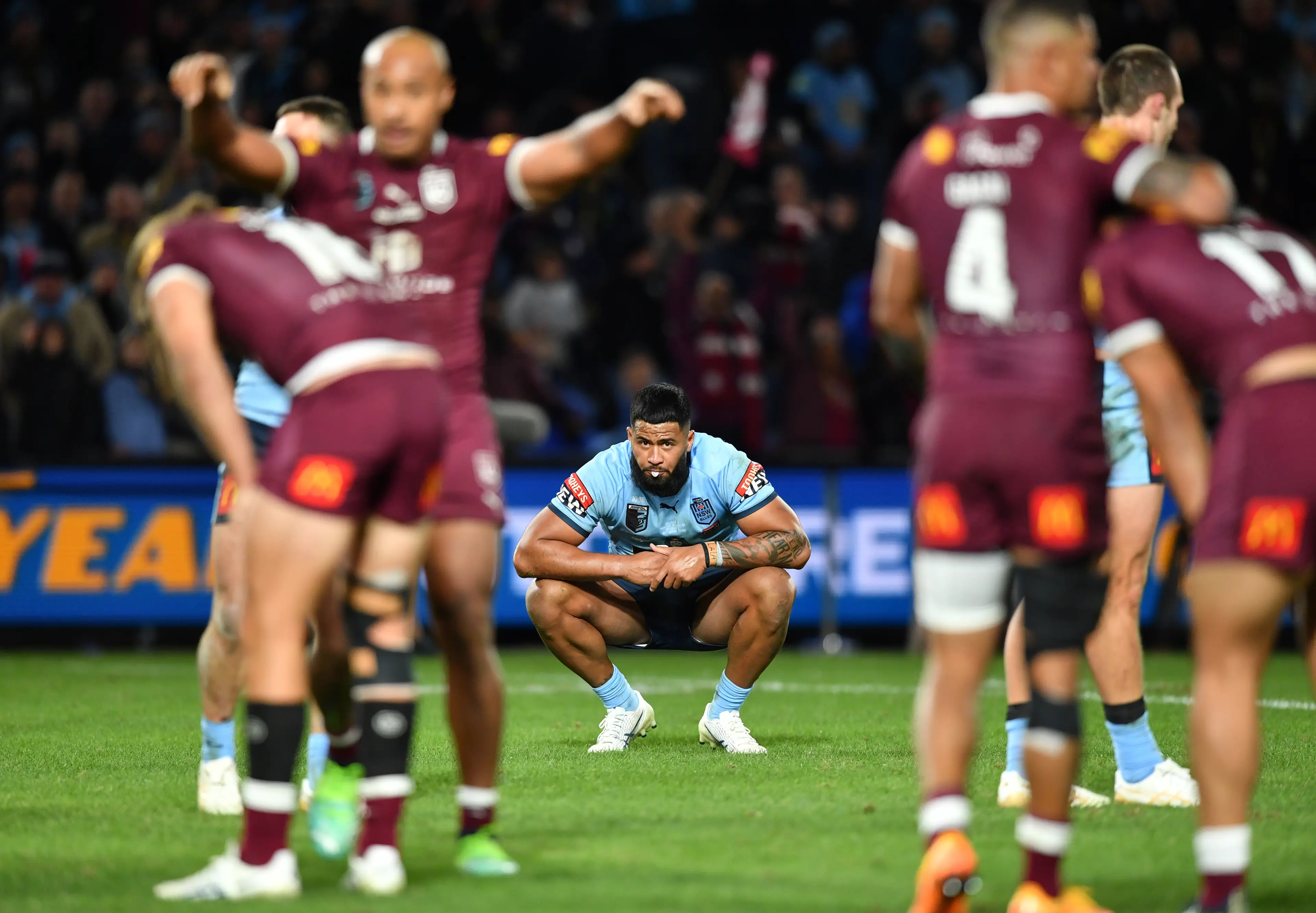 Early in the second half, debutant Nanai in his first minutes on the field, was hit in friendly fire from his own player and did his knee. He was carried ff the field and it looked like the Maroons were now down to 15 players. But Mr Miagi must be in the Qld dressing sheds, as Nanai made a miraculous recovery and came back out to play later in the game.