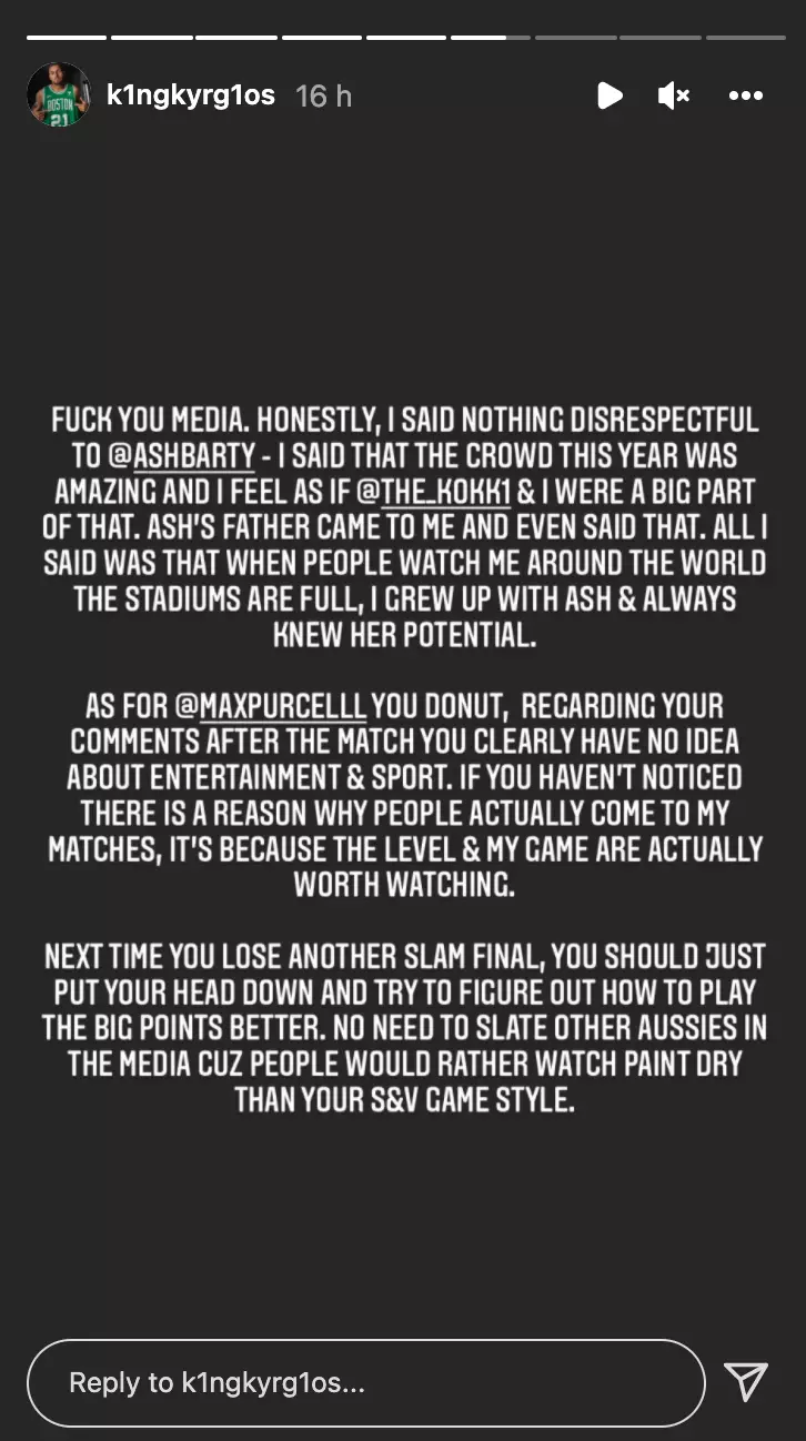 The comments appear to have rubbed people the wrong way with Kyrgios now facing some pretty heavy backlash.