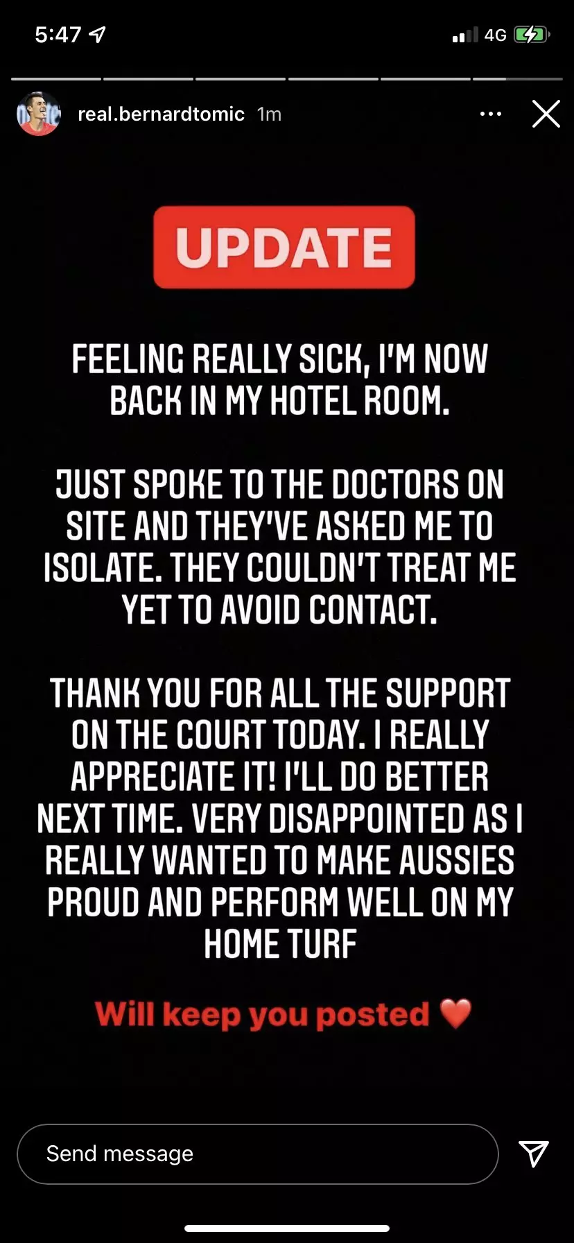 Featured Image Credit: Twitter/Ch7Topics: Tennis news, Australian Open, Australia, Covid-19, Bernard Tomic, Tennis news, Australian Open, Australia, Covid-19, Bernard Tomic