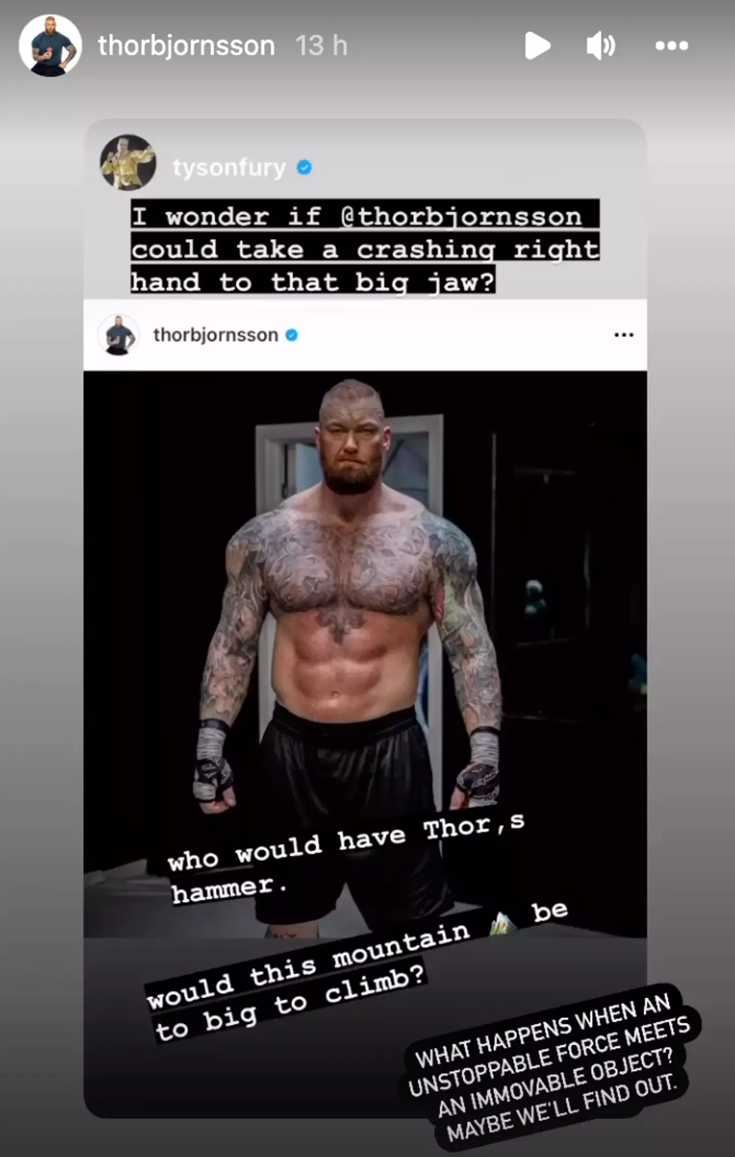 "I wonder if Thor Bjornsson could take a crashing right hand to that big jaw," Fury said via an Instagram story.