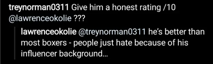 Okolie replied: “He’s better than most boxers - people just hate because of his influencer background…”