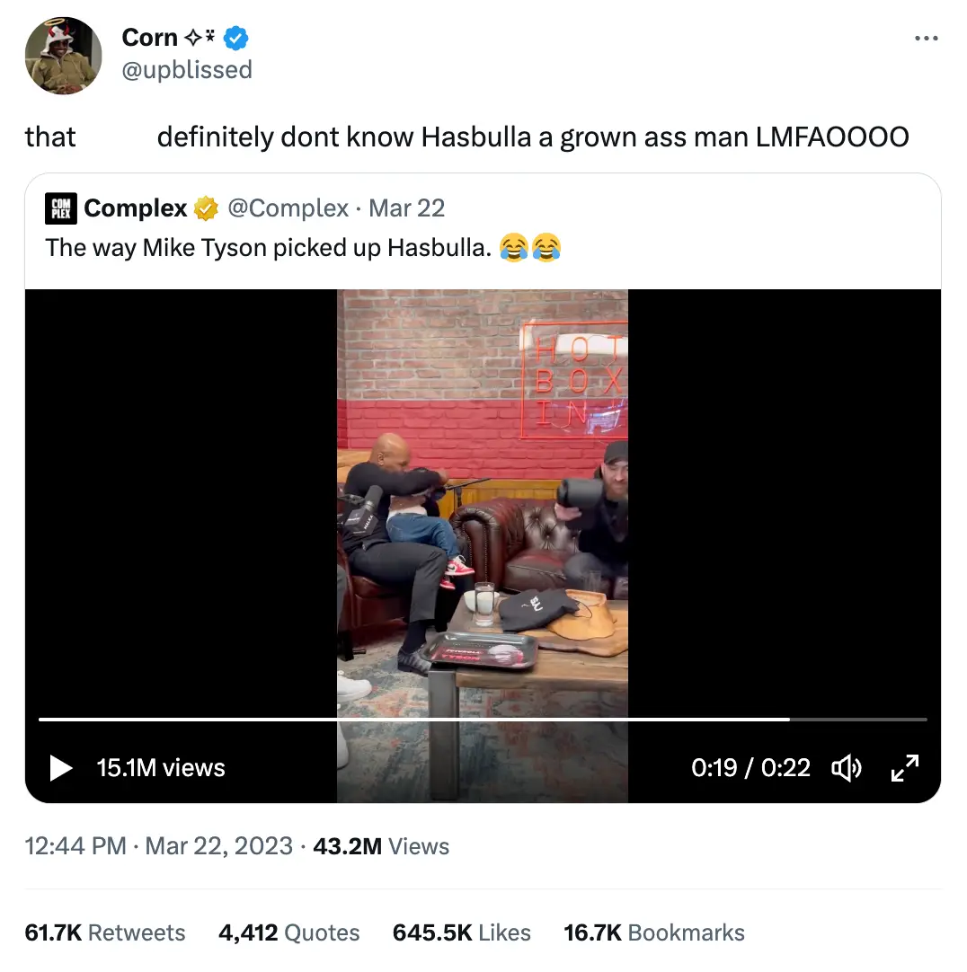 Fans can't quite seem to get over the way Mike Tyson picked up Hasbulla.
