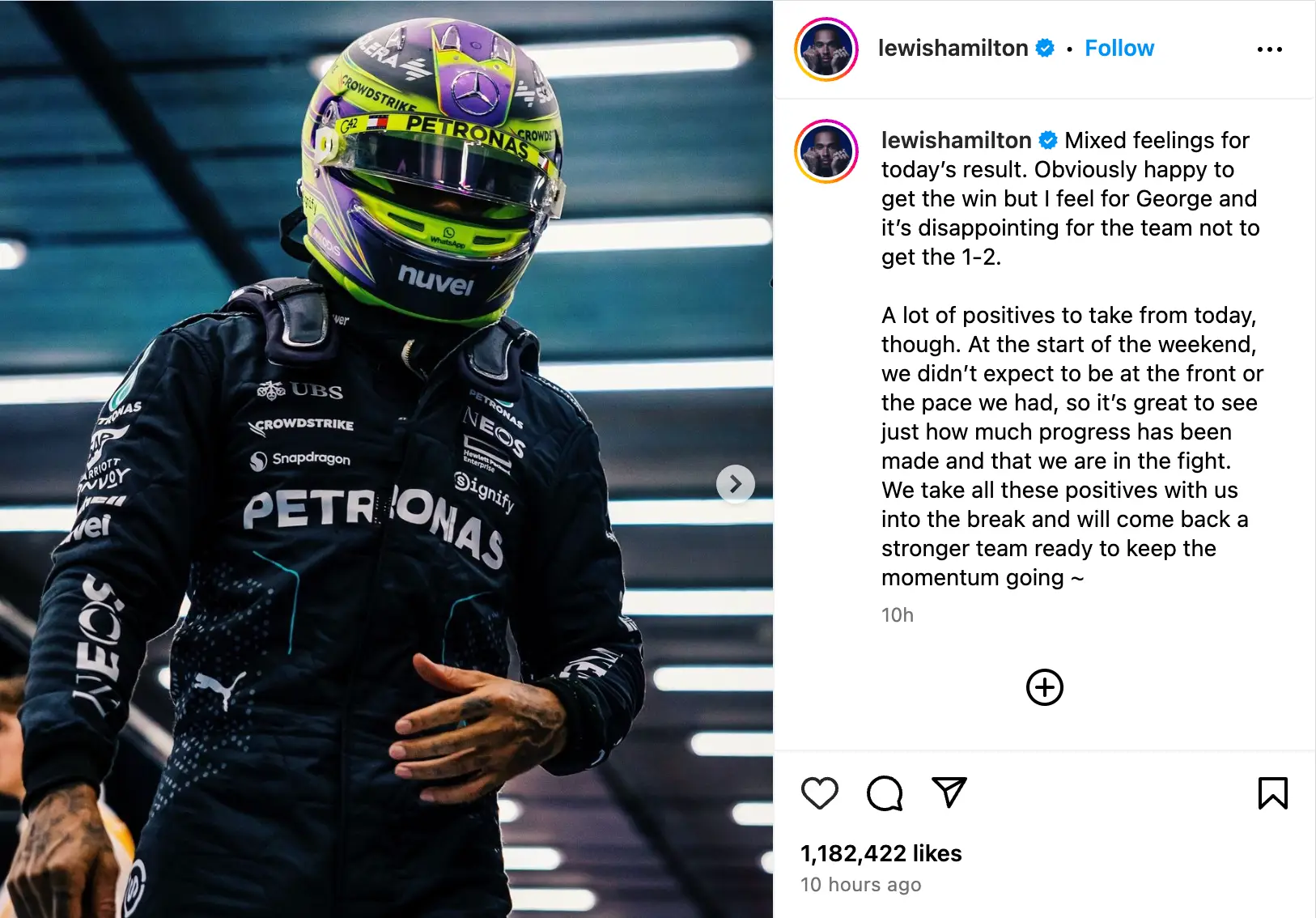 He wrote: "Mixed feelings for today's result. Obviously happy to get the win but I feel for George and it's disappointing for the team not to get the 1-2.