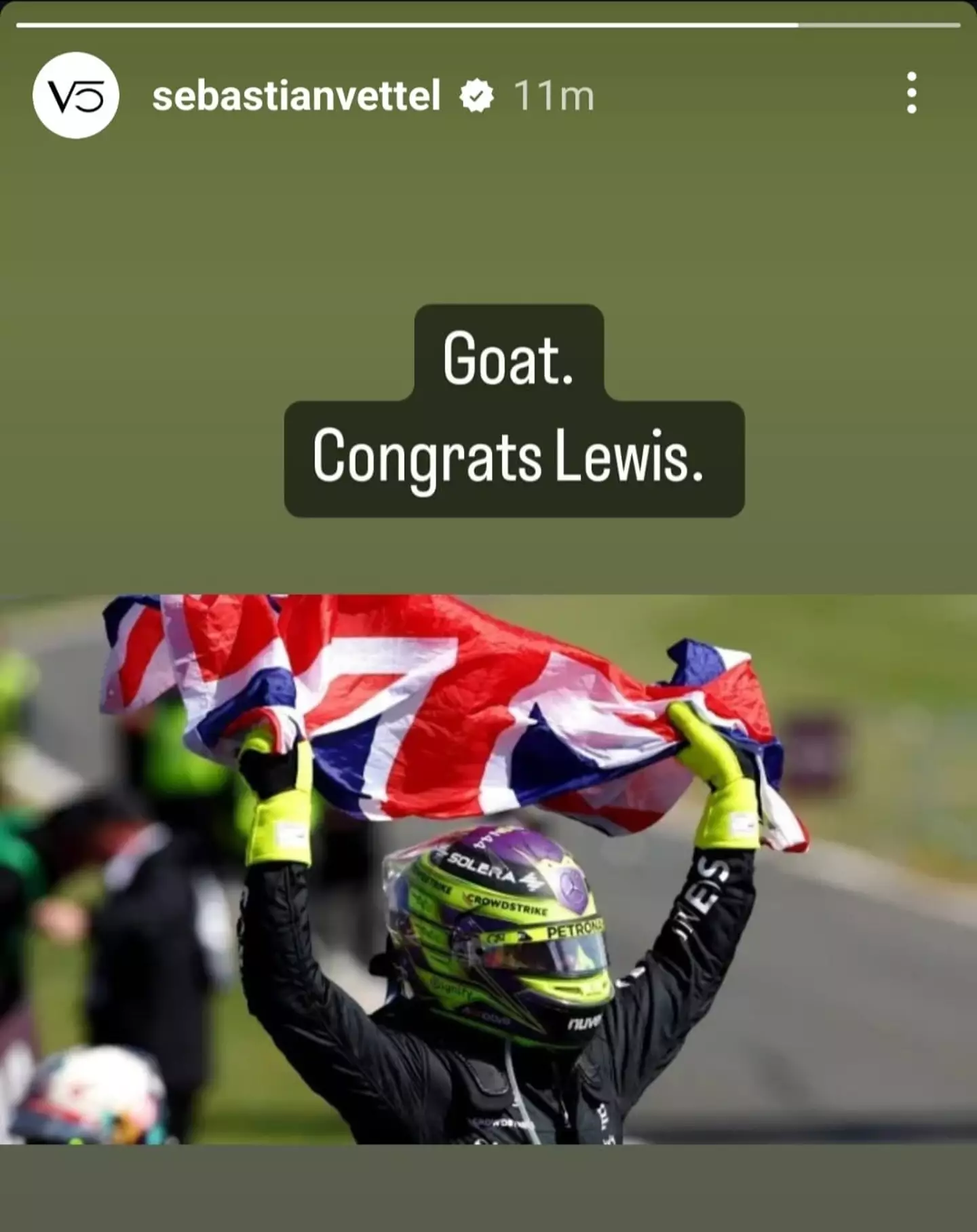 Vettel's Instagram story message was short, as he accompanied a picture of Hamilton's success with the words: "GOAT. Congrats Lewis."