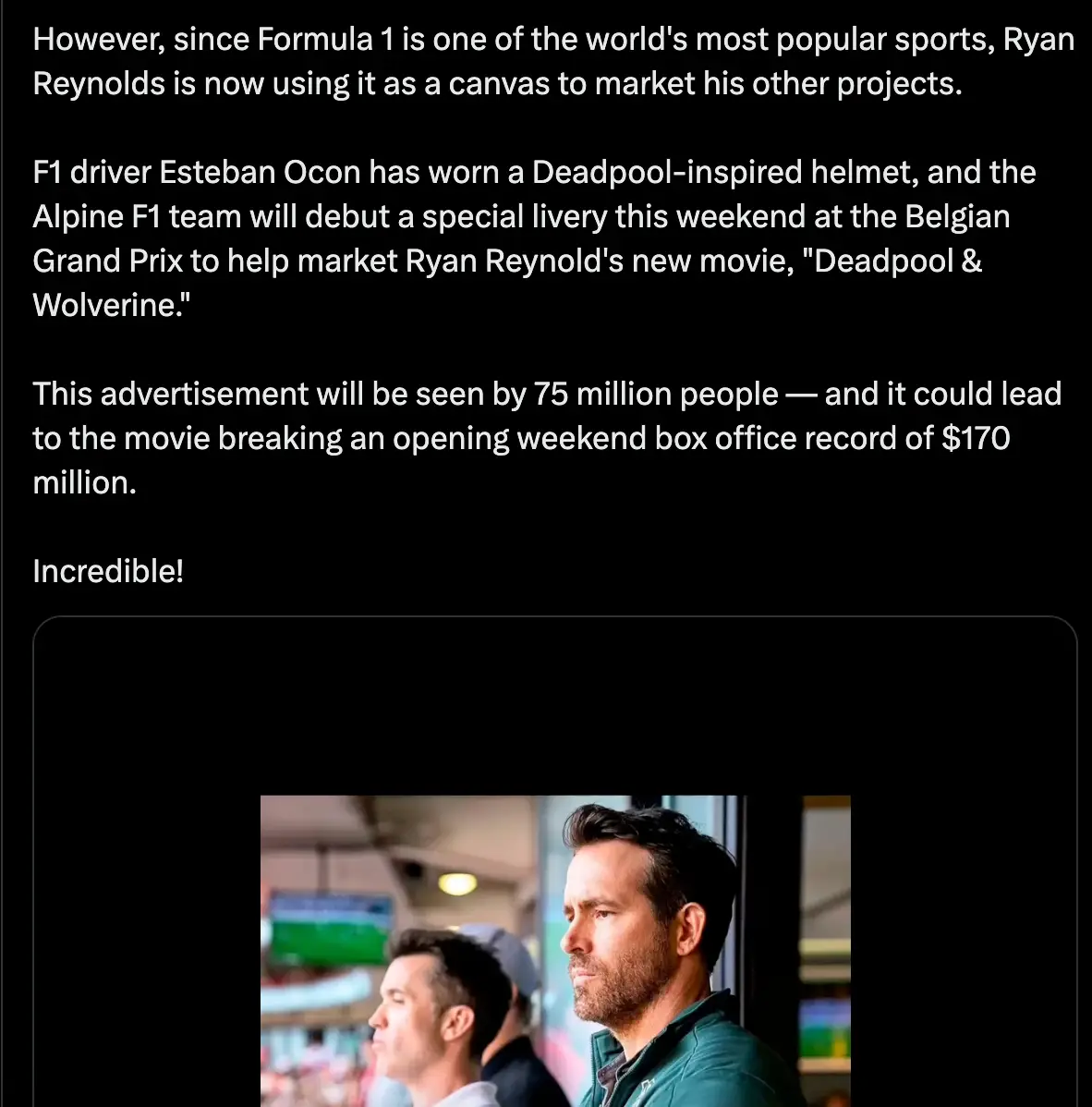 Wrexham co-owner Ryan Reynolds has created another business opportunity ahead of this weekend's F1 Belgian Grand Prix.