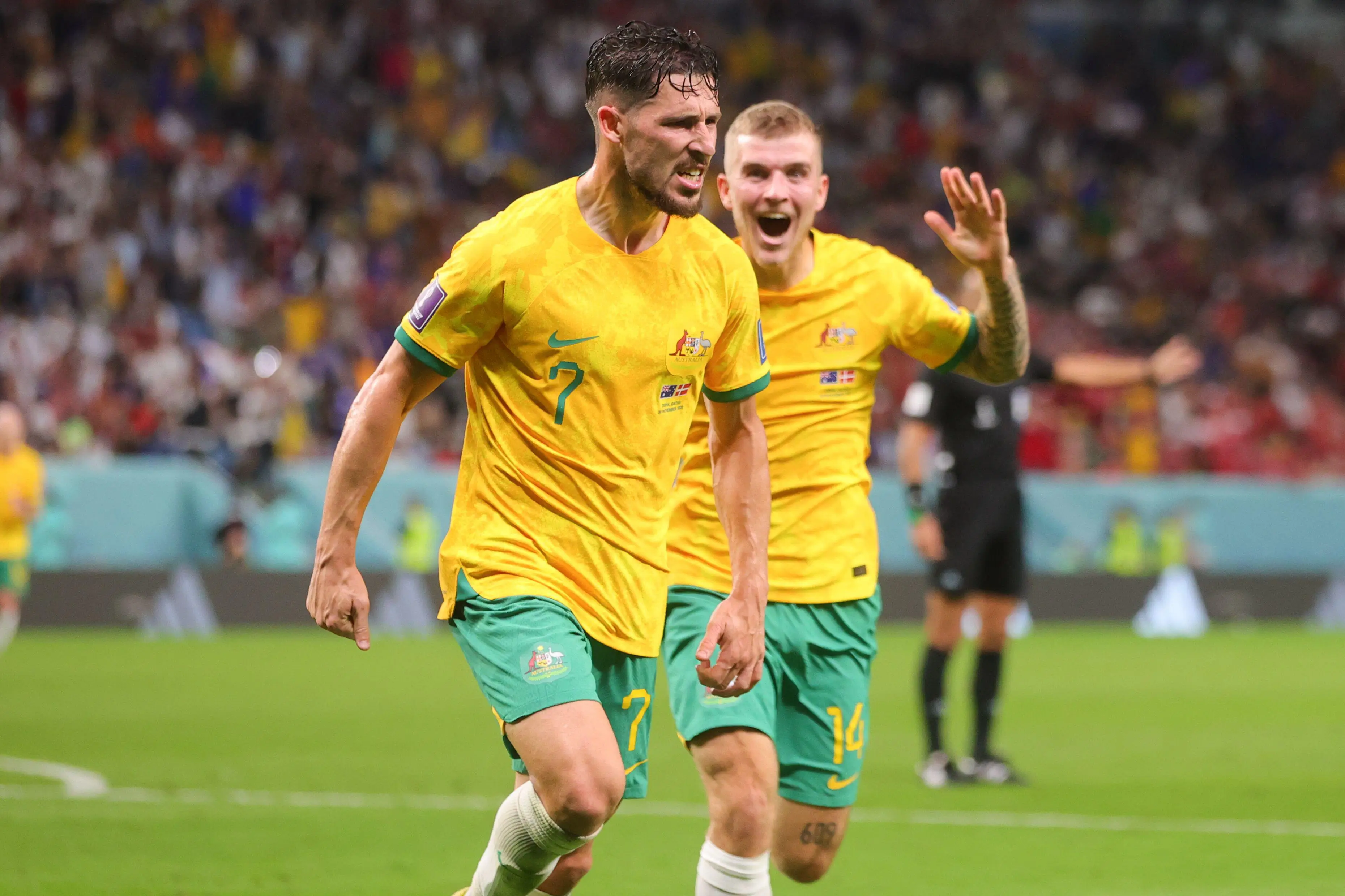 Graham Arnold's side registered perhaps one of the most famous victories in Australian football history, beating Denmark 1-0 to book their spot in the Round of 16 in Qatar.