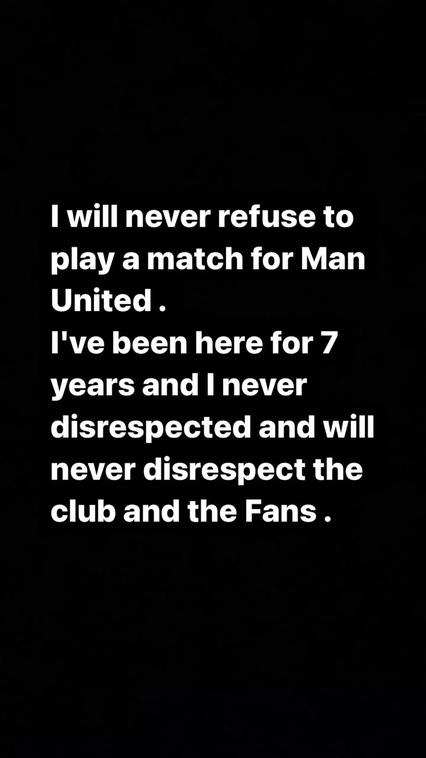 “I will never refuse to play a match for Man Utd,” he wrote in a message posted on Instagram Stories.