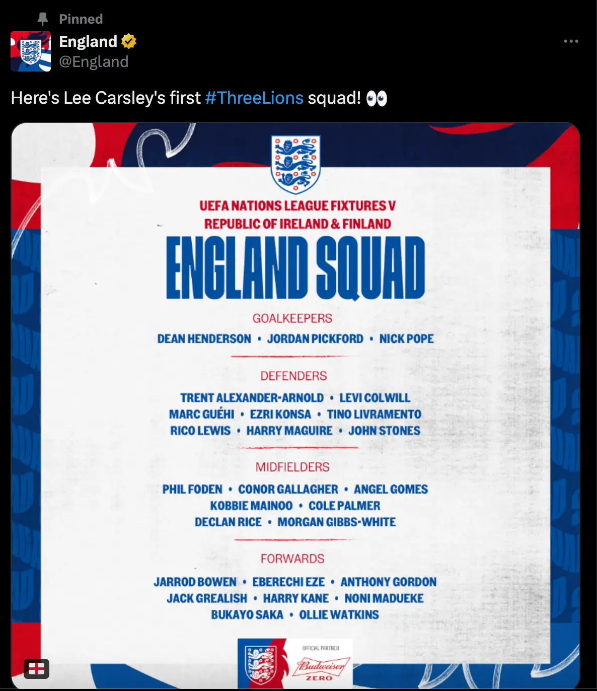 Lee Carsley has announced a much-changed squad for his first selection as interim England manager - and one pick in particular has caught the eye of fans.