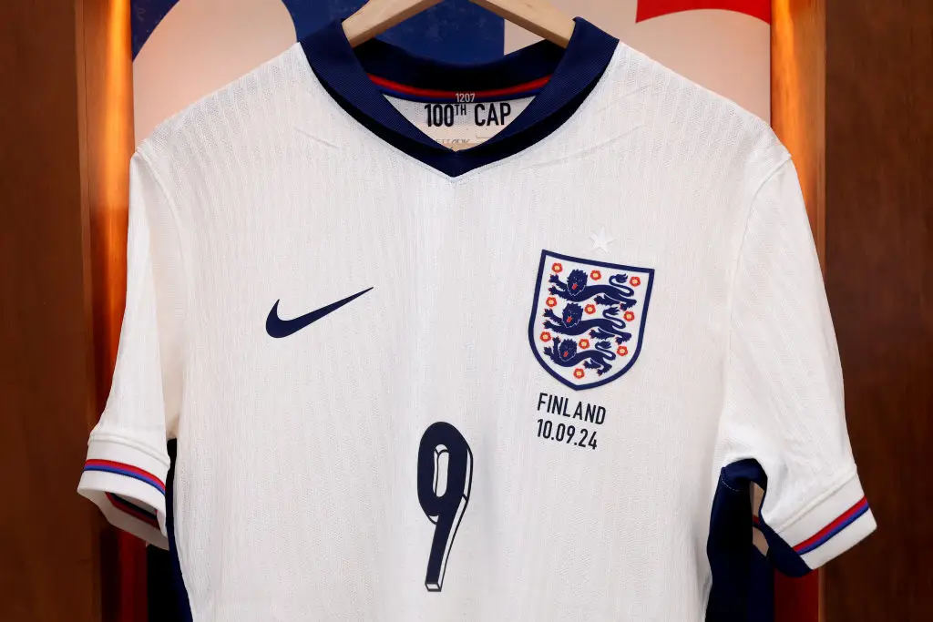 Harry Kane marked his 100th cap for England with two goals against Finland - and his shirt had a special detail on it.