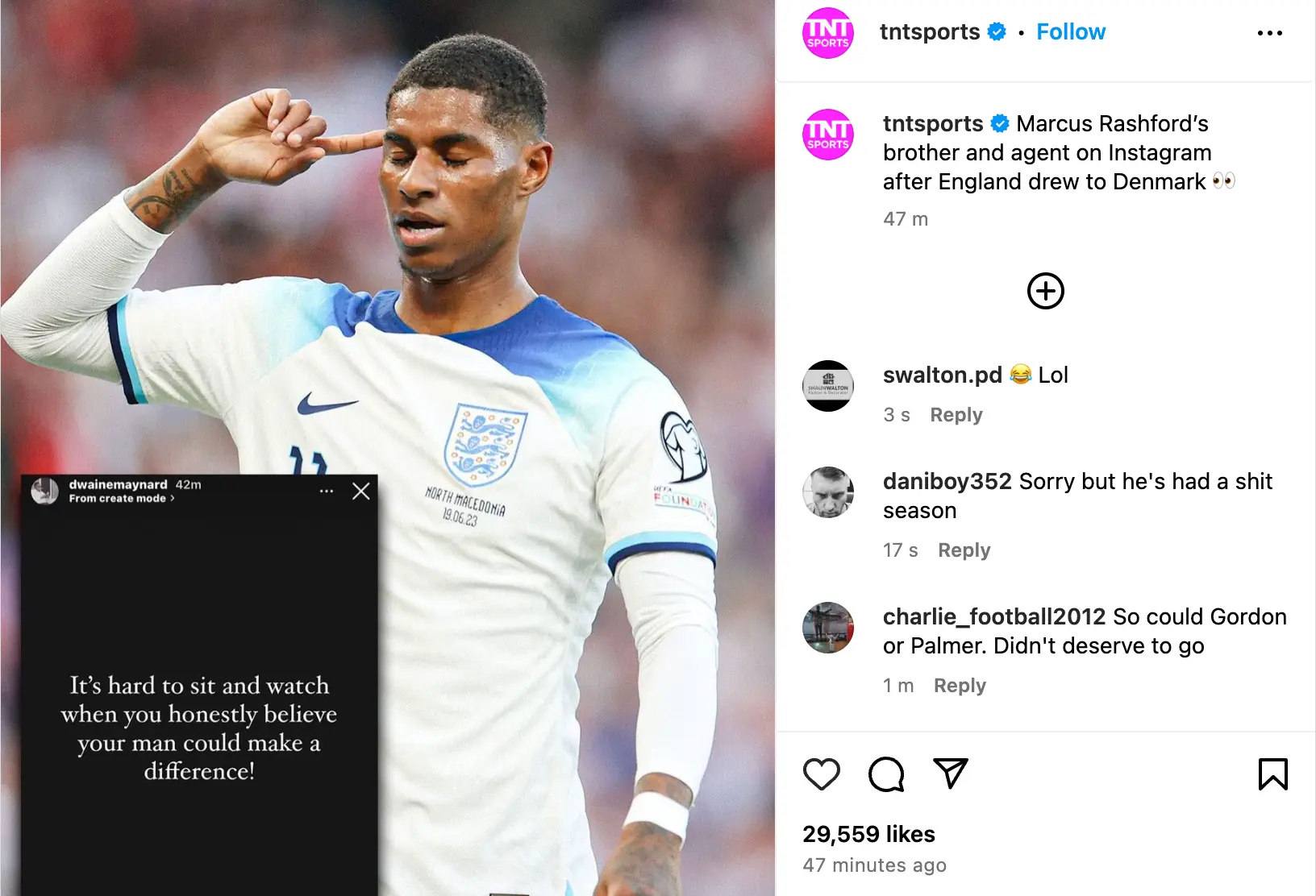 After the game, Rashford's brother, Dwaine Maynard - who is also his agent - took to Instagram.