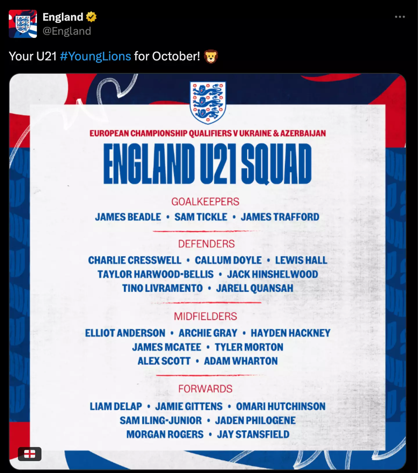 And The Athletic report that he has officially chosen to represent the Three Lions, having initially been called up for a training camp last month but being forced to withdraw through injury.