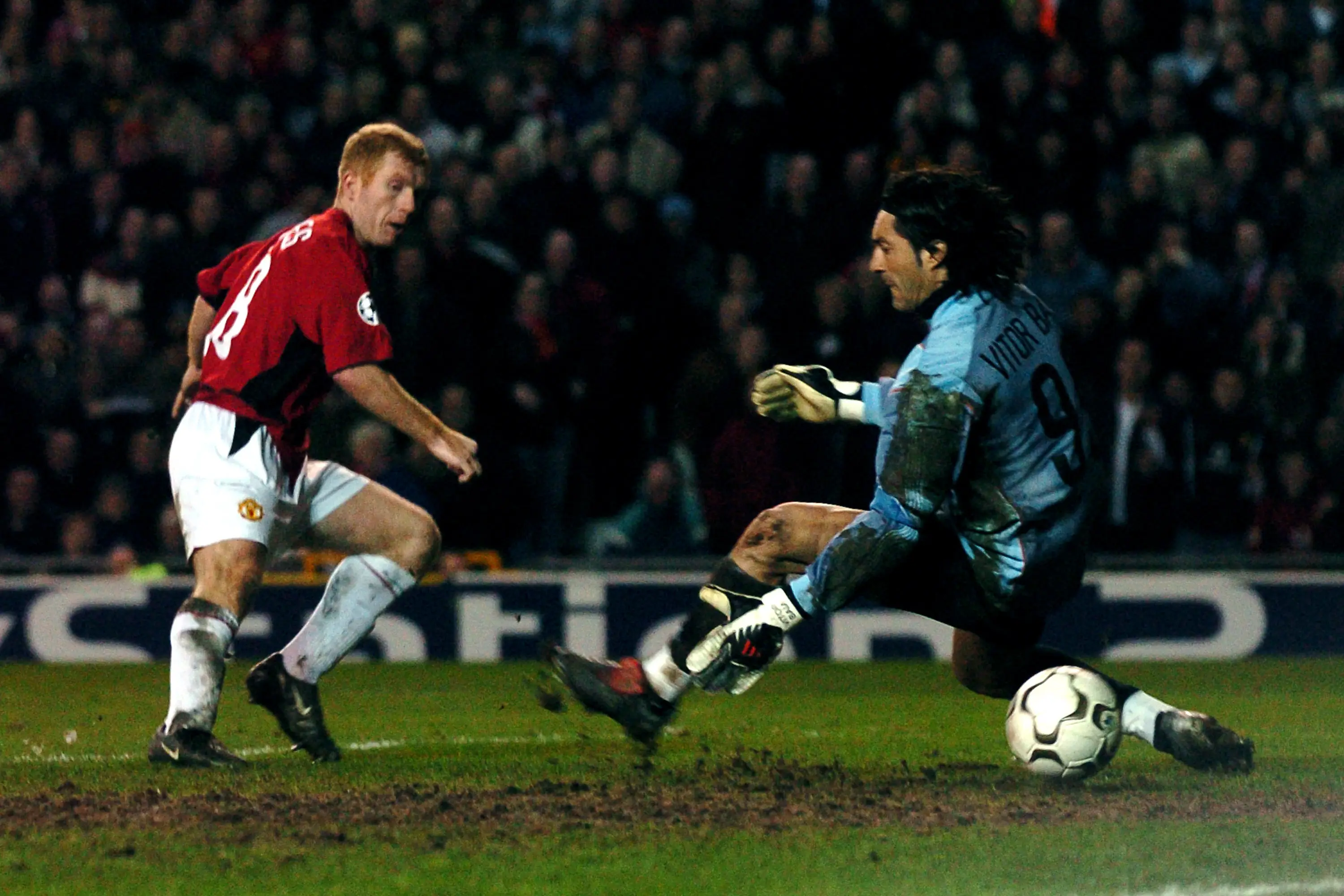 Paul Scholes' first half brace sends Manchester United through to the quarter finals.