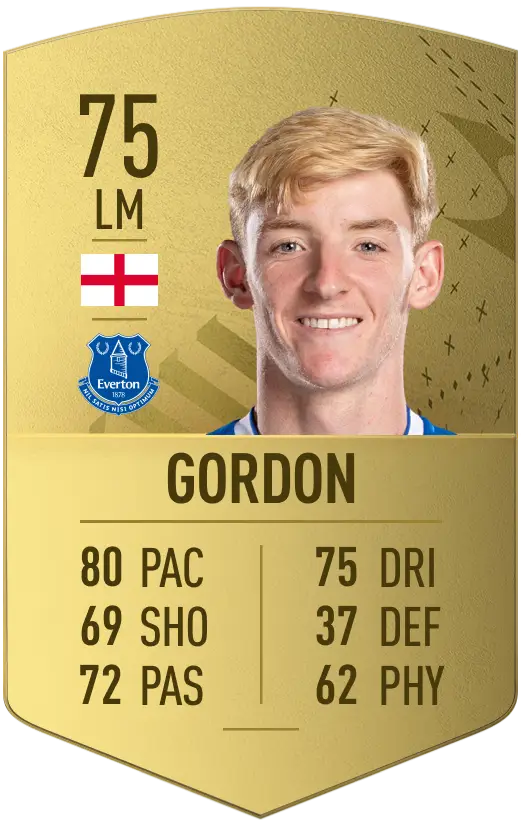 Elsewhere in the Premier League, starlets Anthony Gordon and Jacob Ramsey have both gone from 67 to 75 to become gold cards.