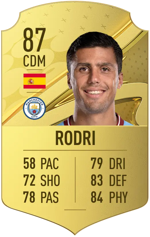 City have a total of nine players in the top 25, including Rodri (87) and Aymeric Laporte and Riyad Mahrez - both 86.