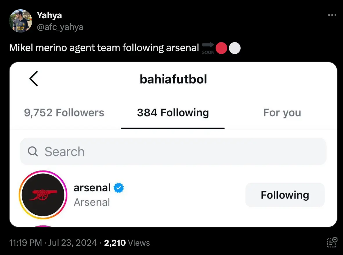 Before Arsenal fans get too excited, though, the agency also follows a number of other English clubs on the platform, including Manchester United and Liverpool.