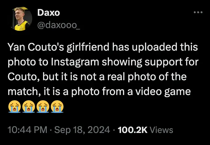 The screenshot itself, though, does appear extremely realistic - with Couto posting the same image to his own Instagram profile after the game had finished.