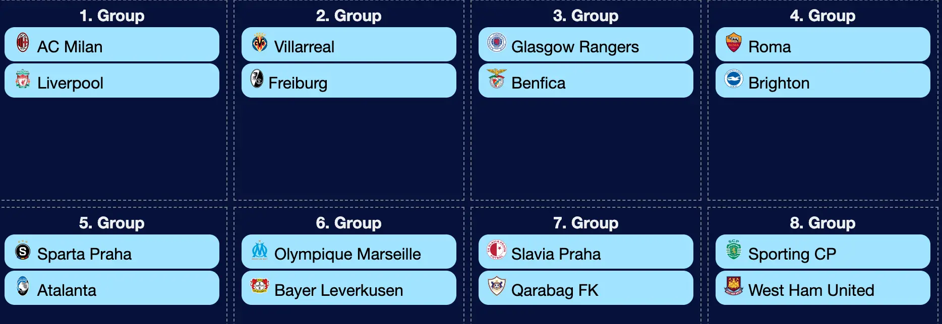 Brighton, meanwhile, were also handed a tough task against Roma, who edged past Feyenoord on penalties in the play-off round.