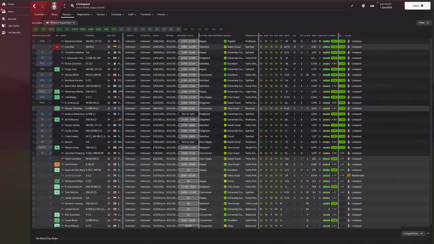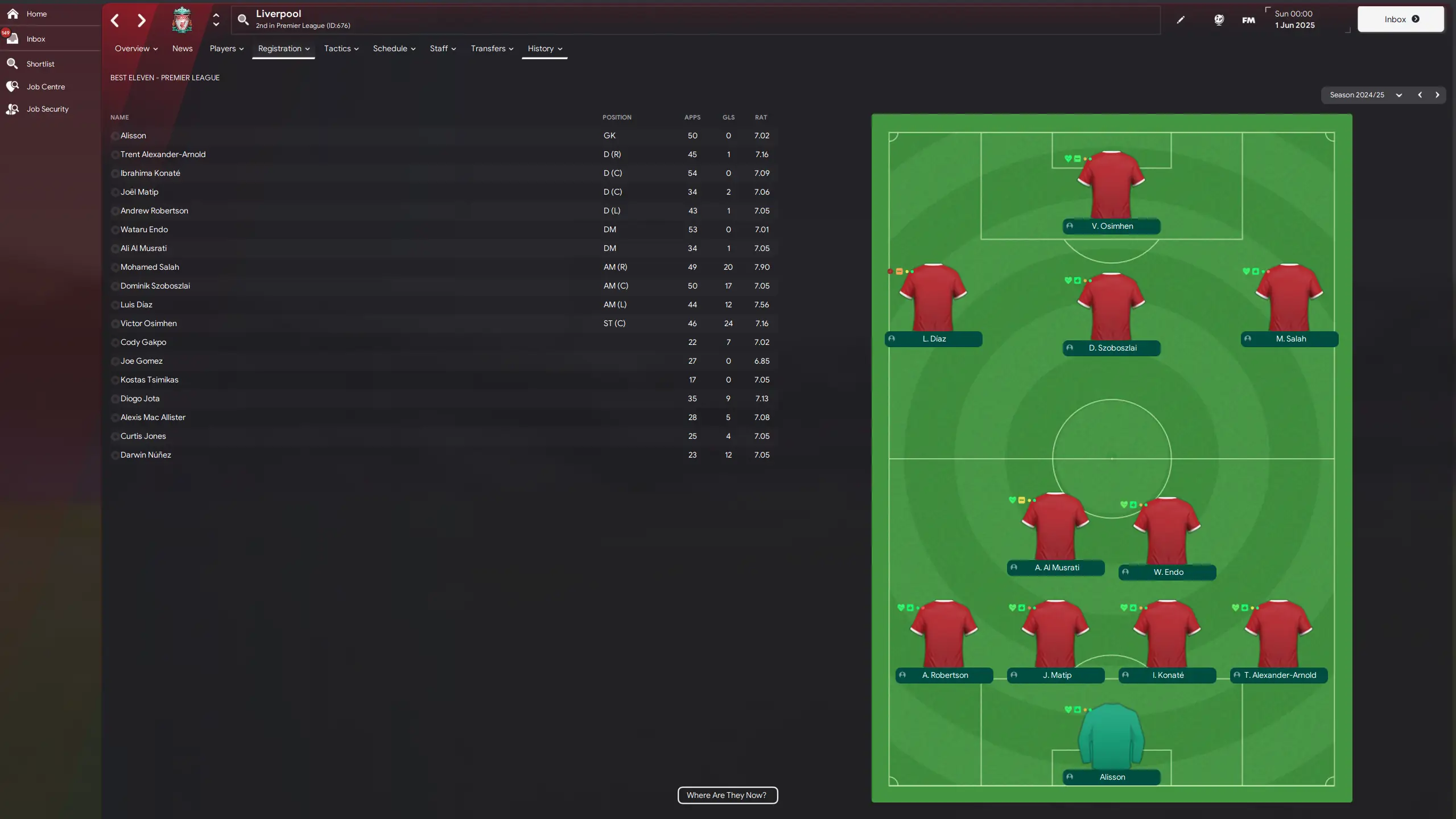 New signing Al Musrati and Wataru Endo are Slot's preferred defensive midfield duo - although Morita replaces the former in the second part of the season - with Alexis Mac Allister only on the bench of the best eleven.