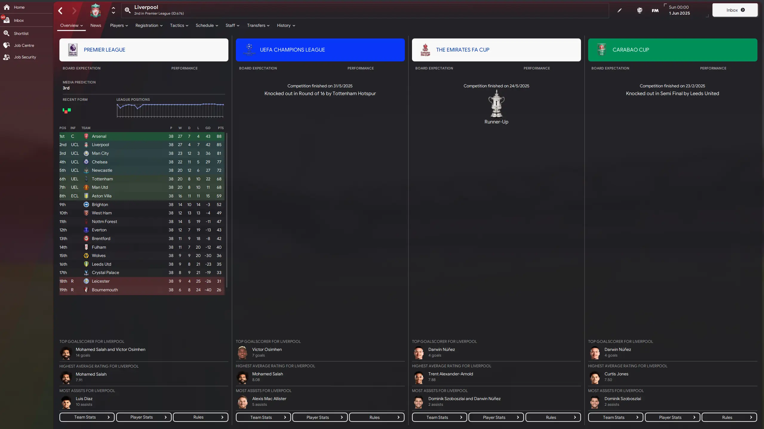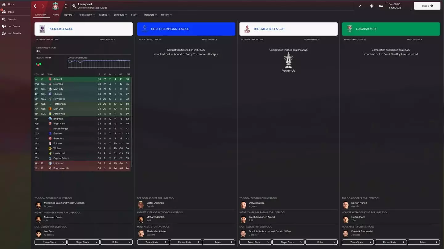 A runners-up finish in the FA Cup is the closest they come to doing so, as the Reds are knocked out of the Champions League at the last 16 stage by none other than Tottenham. They also exit the Carabao Cup at the semi-final stage at the hands of Leeds United.
