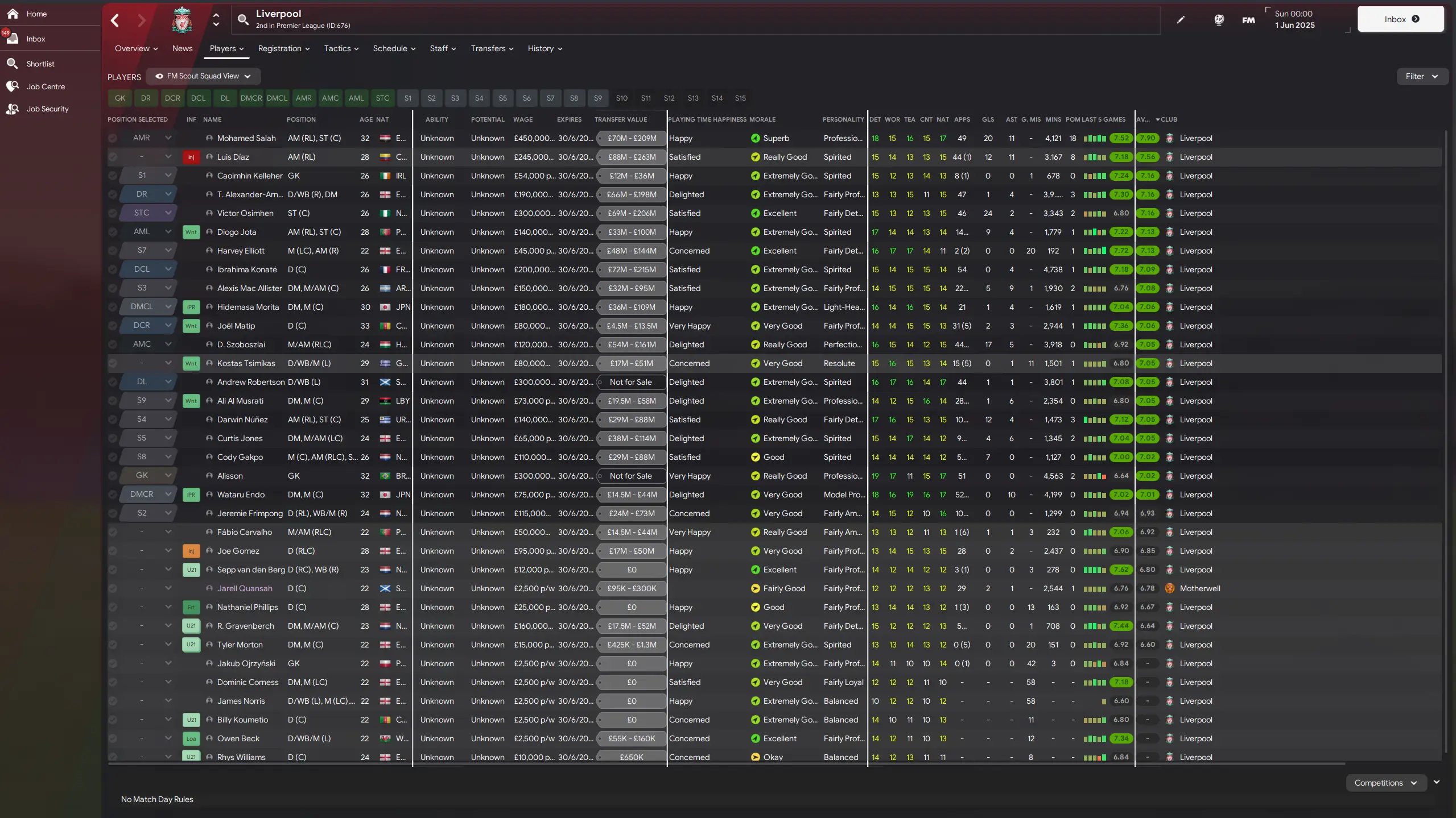 As far as the entire squad goes, Salah is comfortably Liverpool's best-performing player over the season with an average rating of 7.90.