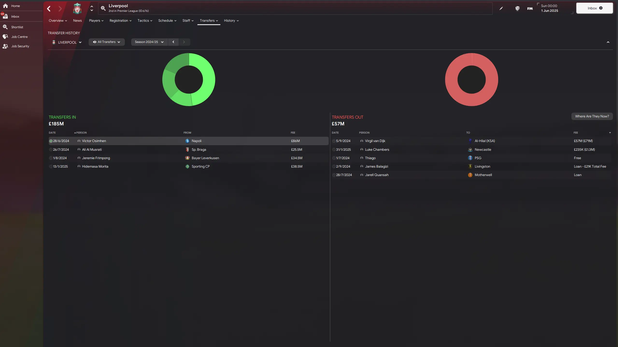 As it turns out, most of that spending is funded by the surprise sale of captain Virgil van Dijk, who joins Saudi Pro League side Al Hilal for an initial £57 million fee. Mohamed Salah, though, does stay at Anfield.