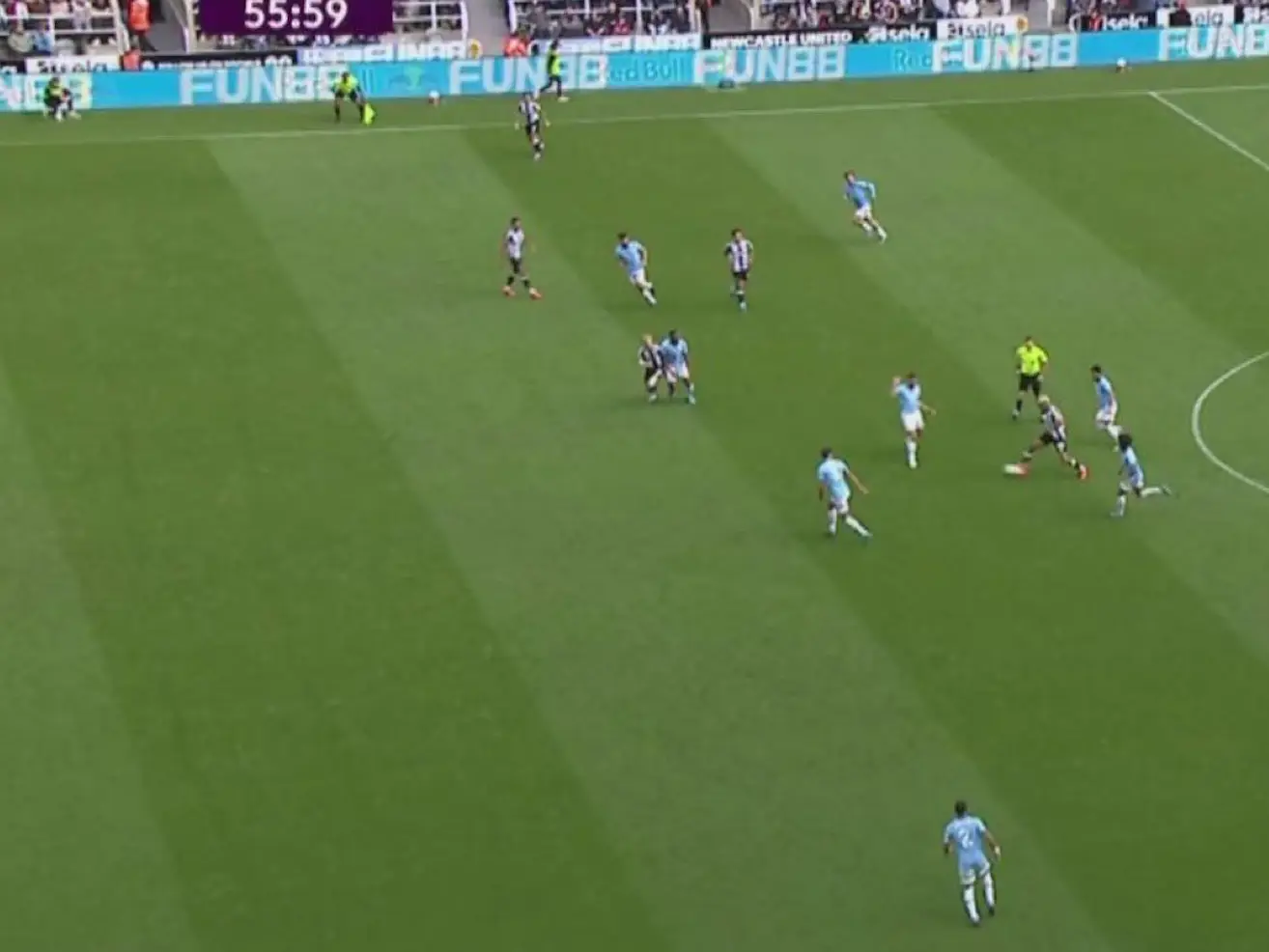 But while the City trio of Gvardiol, Ruben Dias and Manuel Akanji managed to get in front of Gordon, it was Kyle Walker that played him onside.