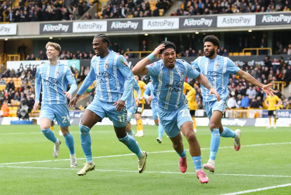 The Sky Blues reached the last four of the FA Cup via a 3-2 win over Wolves at Molineux, with strikers Ellis Simms and Haji Wright scoring in second half stoppage time.