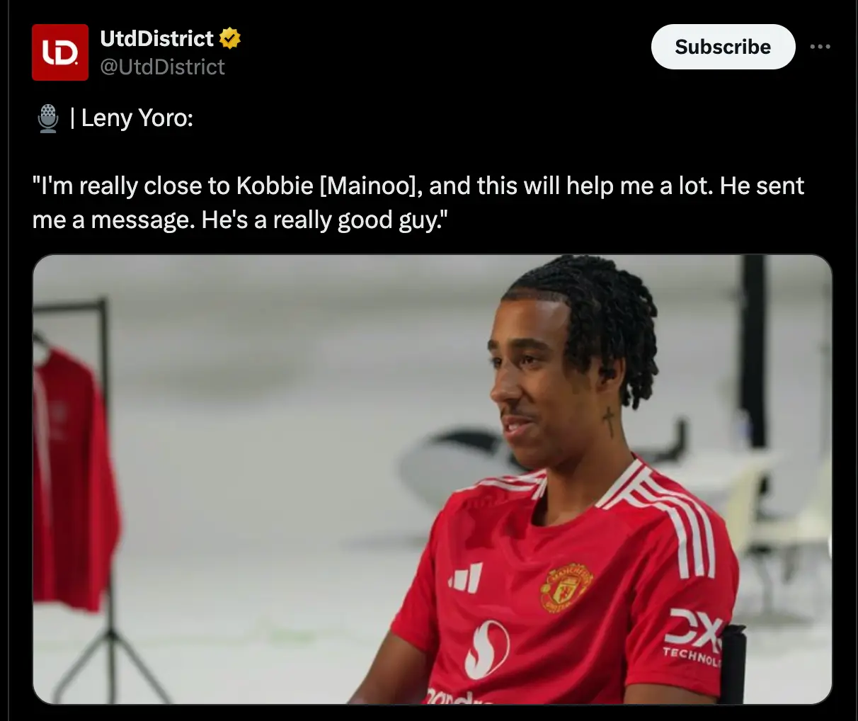 He explained: "I'm really close to Kobbie Mainoo, and this will help me a lot. He sent me a message. He's a really good guy."