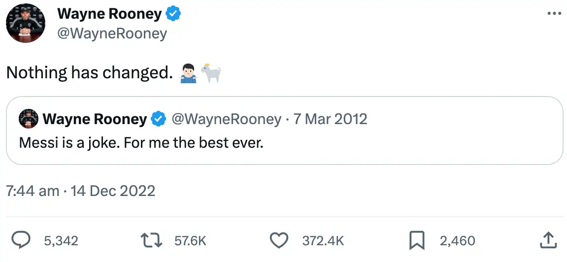 Rooney has reiterated that stance on a number of occasions. In March 2012, he took to X, known as Twitter at the time, to write: "Messi is a joke. For me the best ever."
