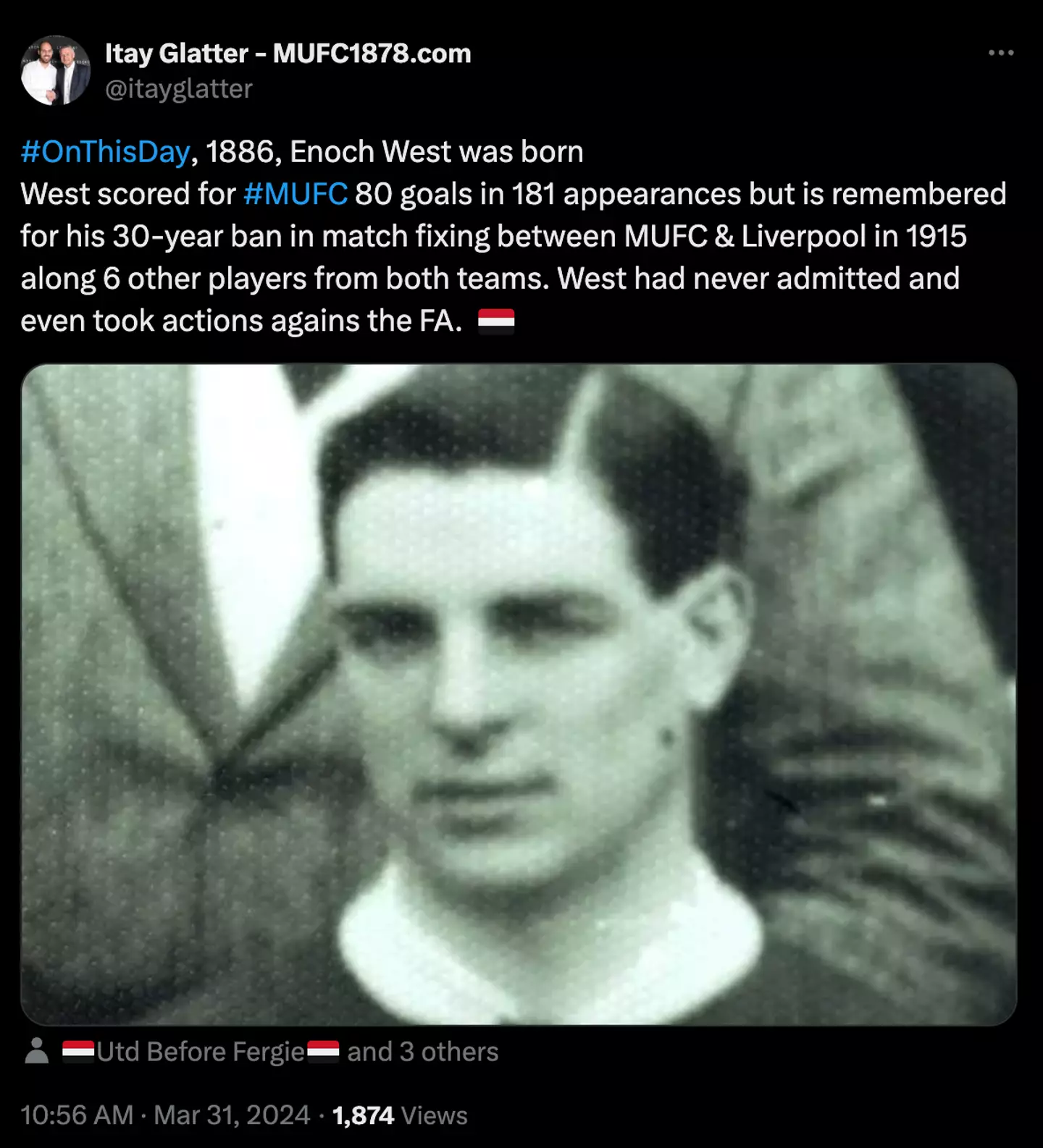 One of the players in question was United striker Enoch West, who scored 72 goals in 166 appearances.