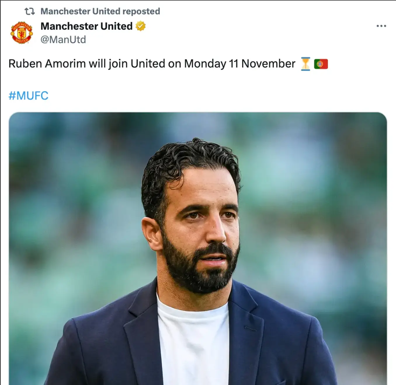 On Twitter, United retweeted their post confirming that Amorim would be appointed officially at Old Trafford on November 11.