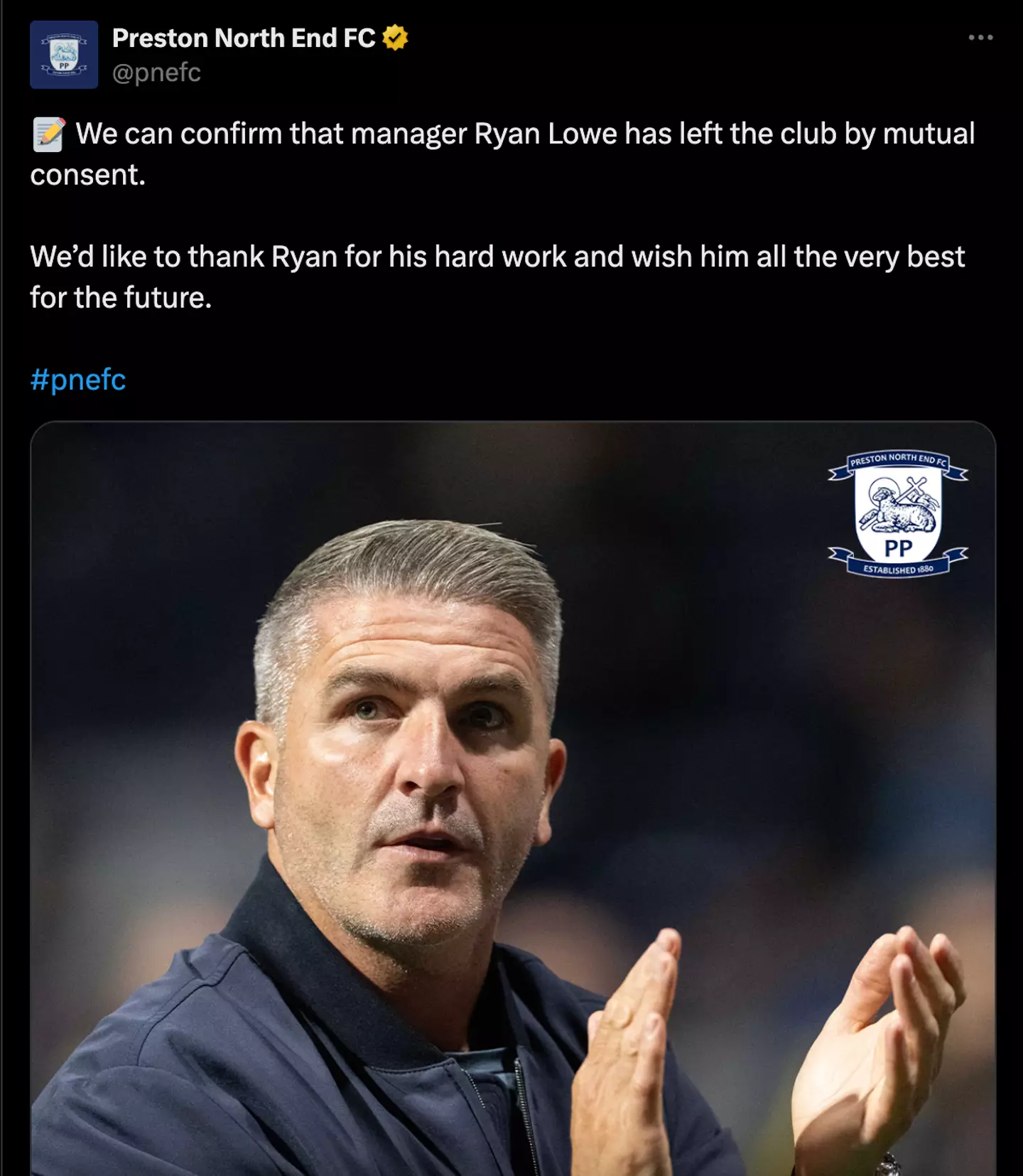 North End announced on Monday morning that they had parted company with Lowe via mutual consent after Friday's 2-0 home defeat to Sheffield United.