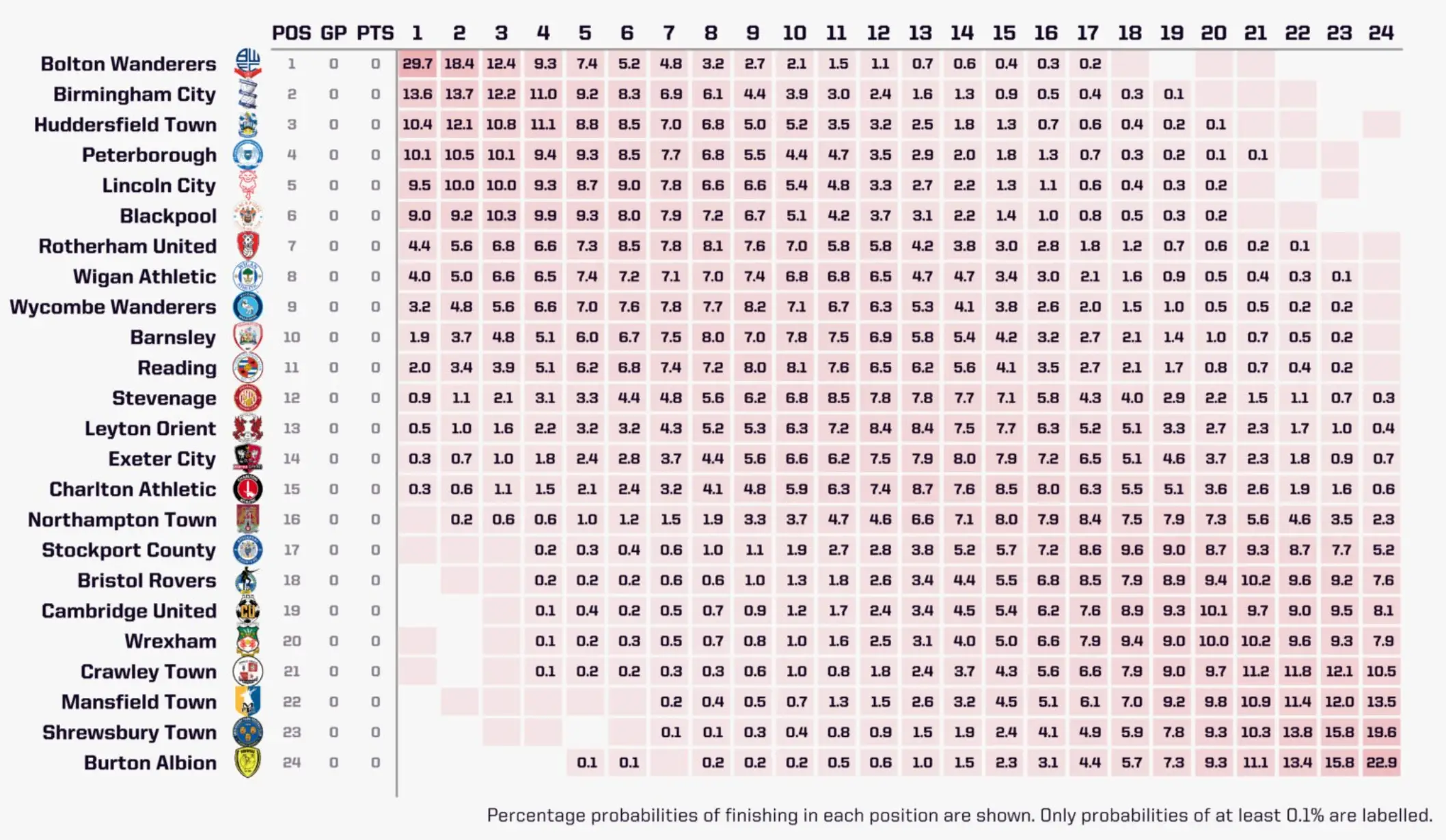 Their most likely finishing position by probability, though, is 21st (10.2 per cent) - meaning the Red Dragons will be out to prove those predictions wrong during the upcoming season.