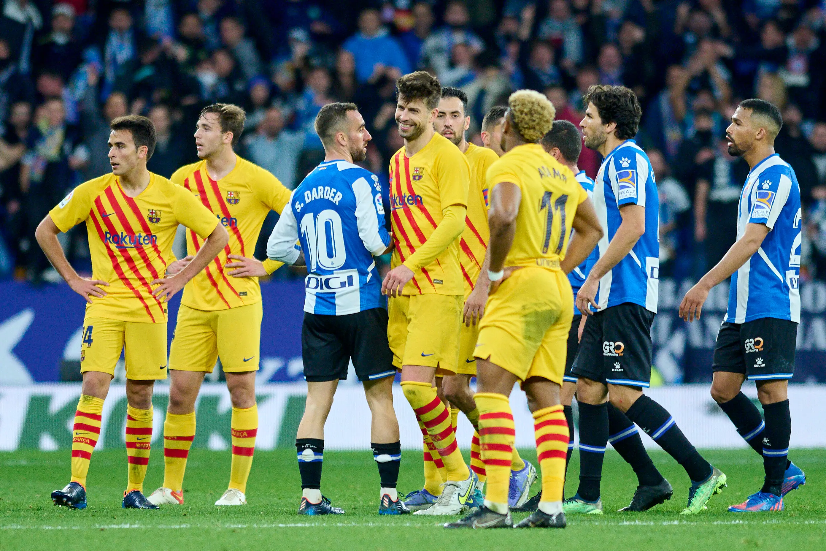 Espanyol were reduced to nine men after Nico Melamed and Manu Morlanes were dismissed, while Pique was also dismissed during a chaotic injury-time period.