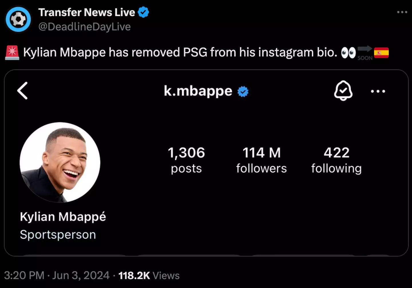 Fans think Kylian Mbappe has effectively announced his move from PSG to Real Madrid prior to the Spanish club's official announcement.
