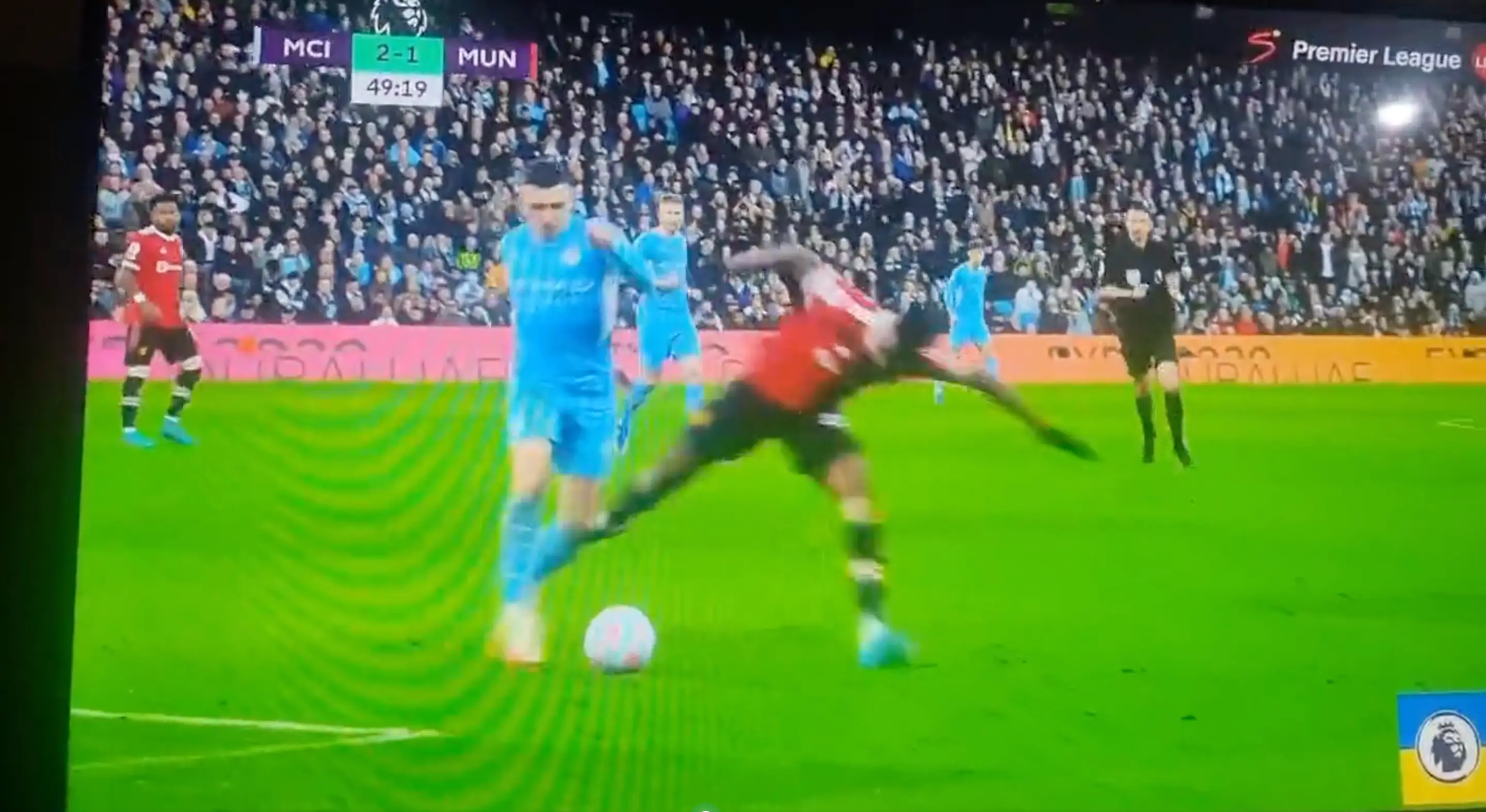 Manchester City playmaker Phil Foden “bullied” Aaron Wan-Bissaka and sent the Manchester United defender flying with a powerful shoulder barge.