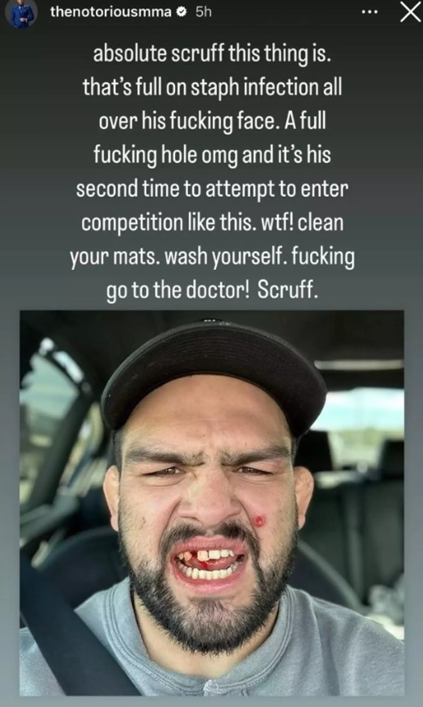 McGregor posted: “Absolute scruff this thing is. That’s full-on staph infection all over his f*****g face.
