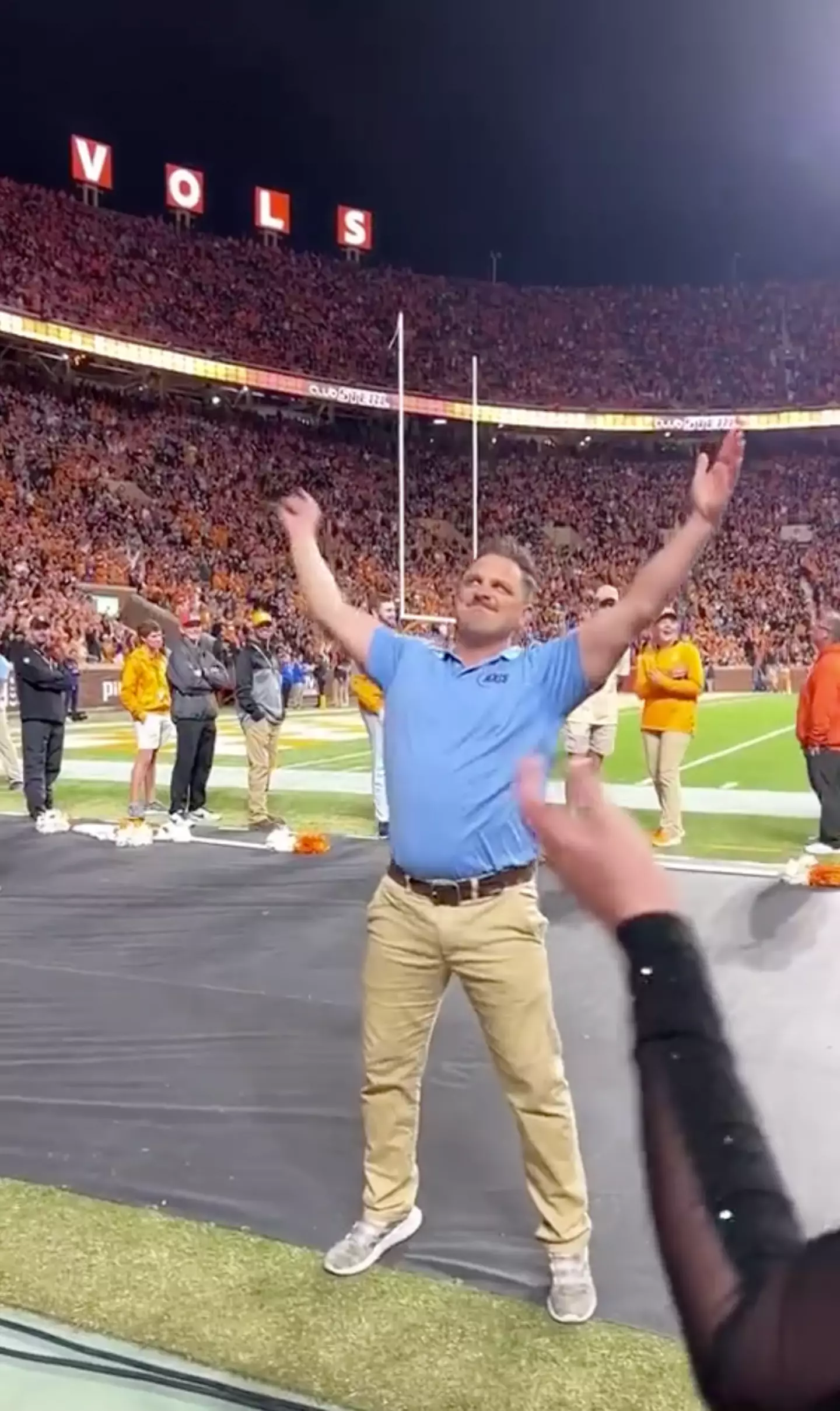 A ‘security guard’ has shocked college football fans after making a surprise performance as part of the University of Tennessee dance team.