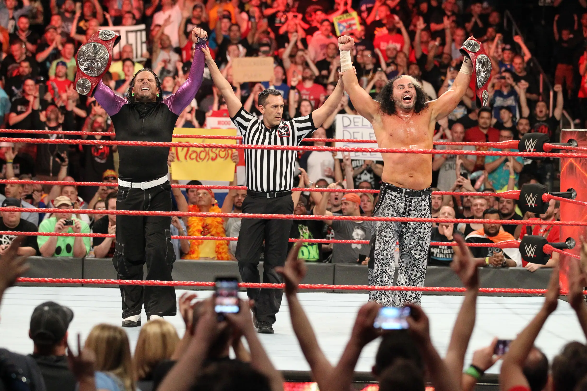 Ever since The Hardys' homecoming, the "Delete!" chants have been off the charts. It's something that fans clicked onto while the brothers were doing their thing in TNA and it's transferred over to WWE, where the fans were joining in at Wrestlemania. There's one particular shot where Matt and Jeff are in the ring, looking on, as a sea of people are vigorously waving their hands - much to the appreciation of the Raw Tag Team Champions.