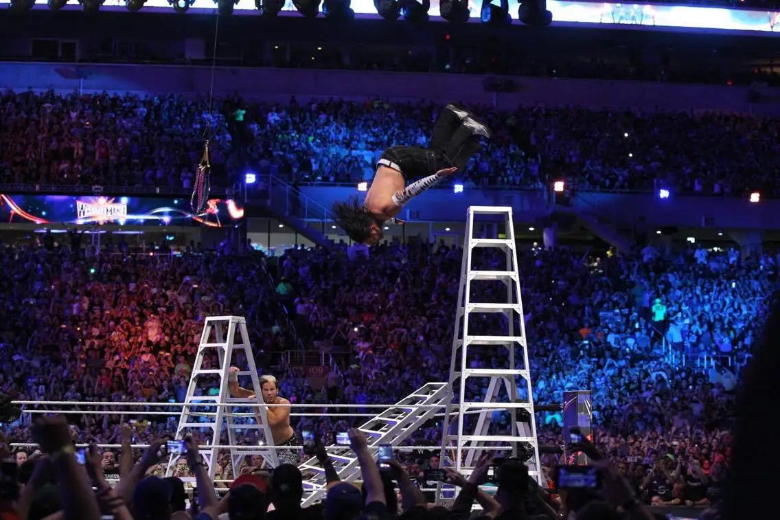 Following an incredible swanton bomb off a 20ft ladder from Jeff that left the younger brother BROKEN, Matt climbed the ladder to grab the belts and beat the teams of Enzo and Cass, Sheamus and Cesaro and Gallows and Anderson to become seven time champions and create a memorable Wrestlemania moment.