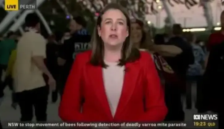 An ABC journalist was on the ground outside Optus Stadium in Perth ahead of State of Origin Game 2 when a woman seized her opportunity to get on camera.