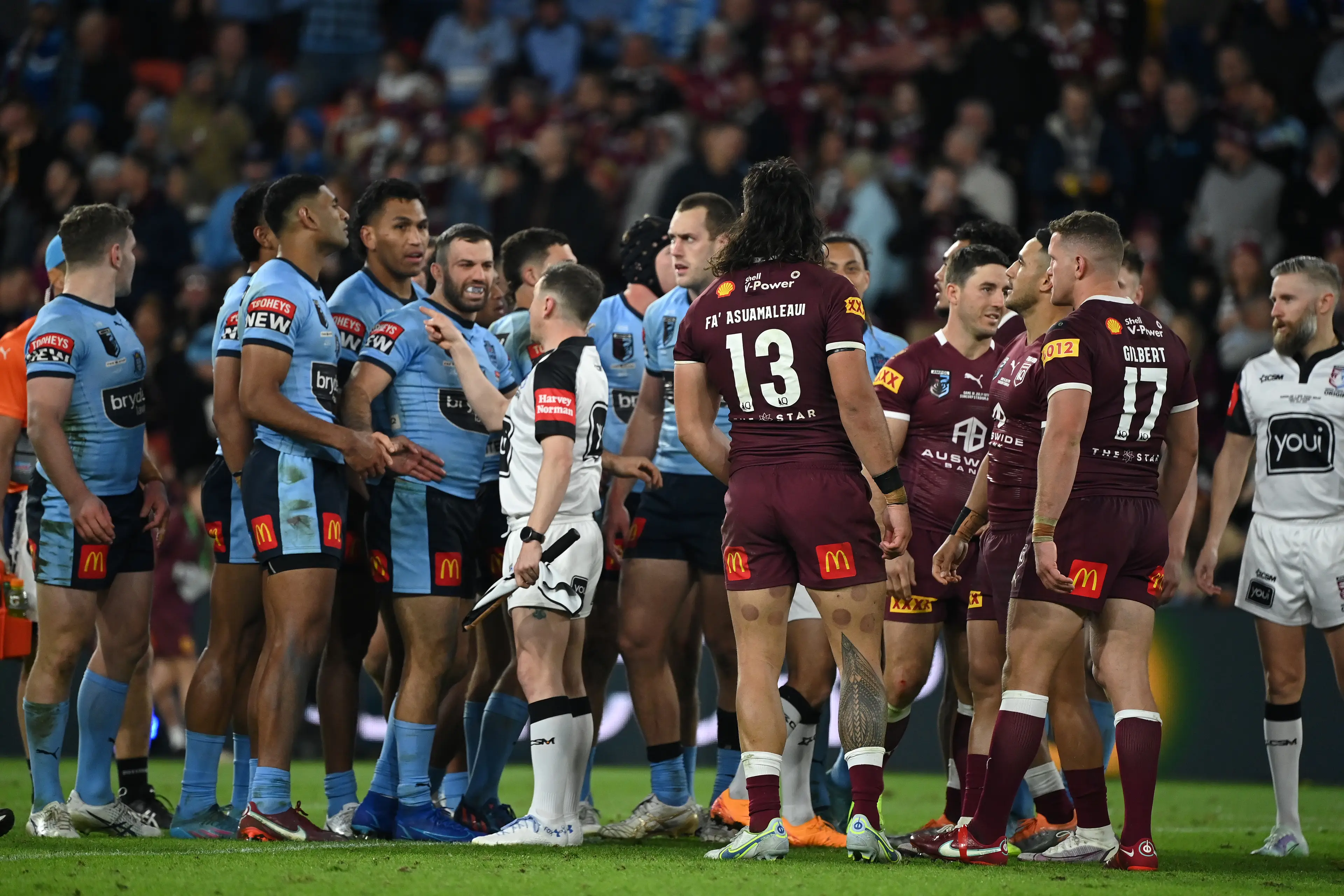 Instead of celebrating, the Queensland players rushed over to where it was all kicking off between Gagai and Burton.