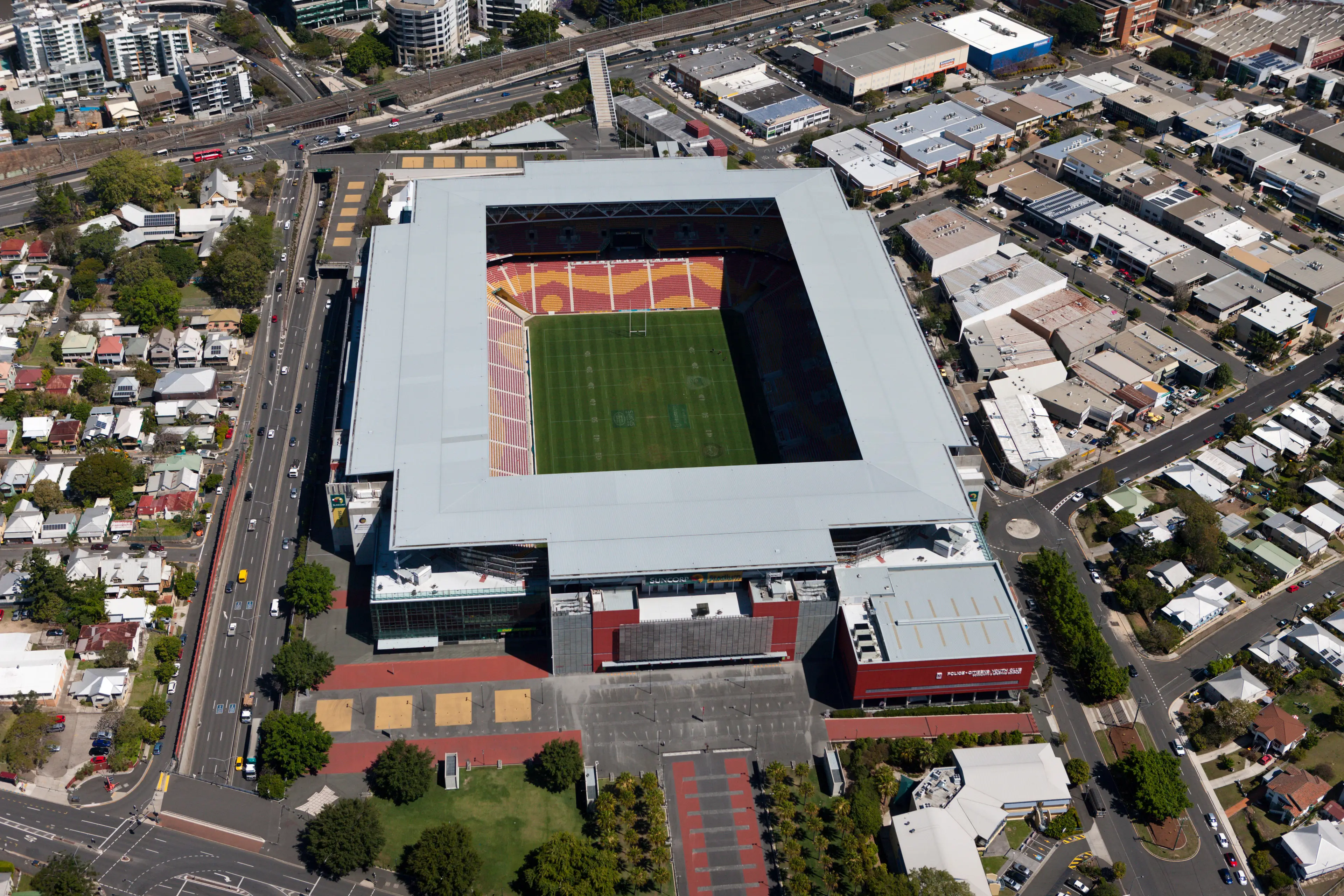 There are stations in Milton and Roma Street which are the nearest to the stadium.