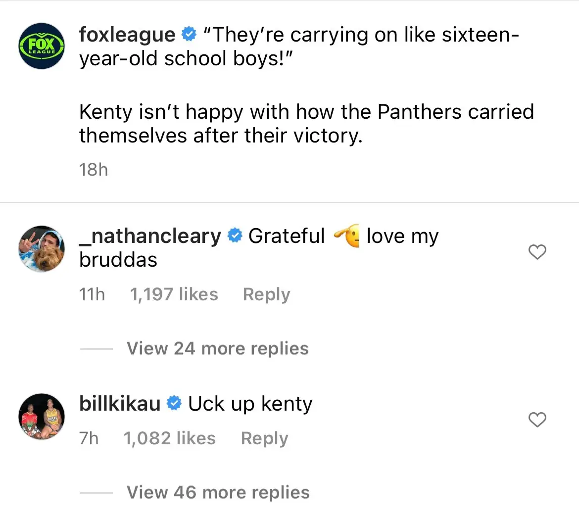 Star player Nathan Cleary also responded, saying: “Grateful. Love my bruddas.”