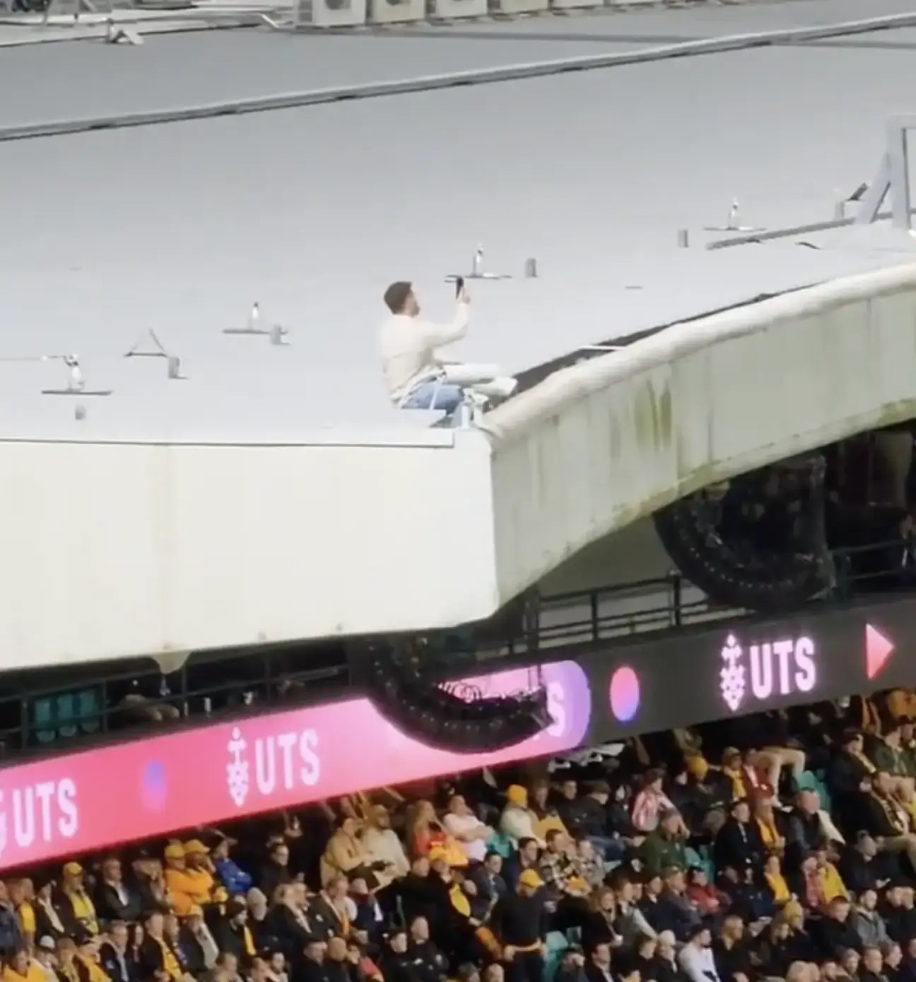 Viral footage shared on social media shows the man casually chilling on the roof of the Sydney Cricket Ground on Saturday night (16 July).